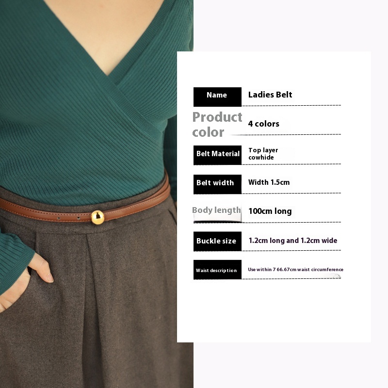 Top Layer Cowhide Thin Belt For Women Genuine Leather Waist Seal All-match Waist Decoration With Dress Belt