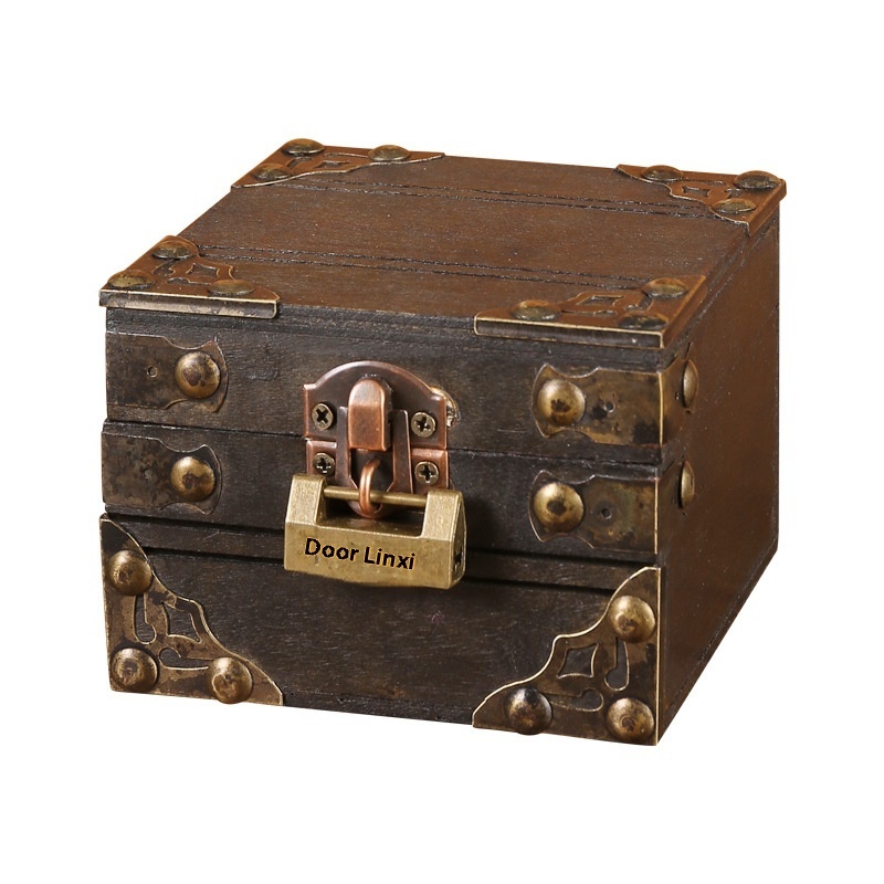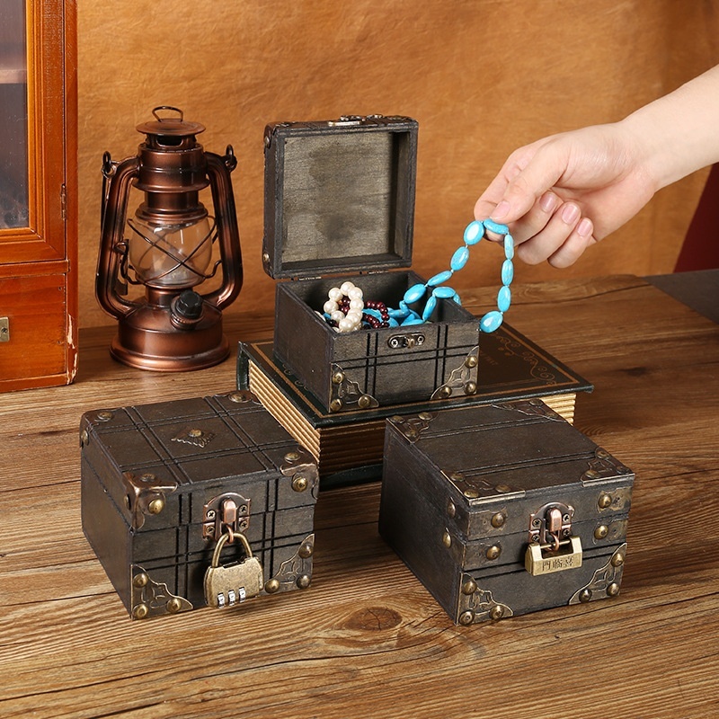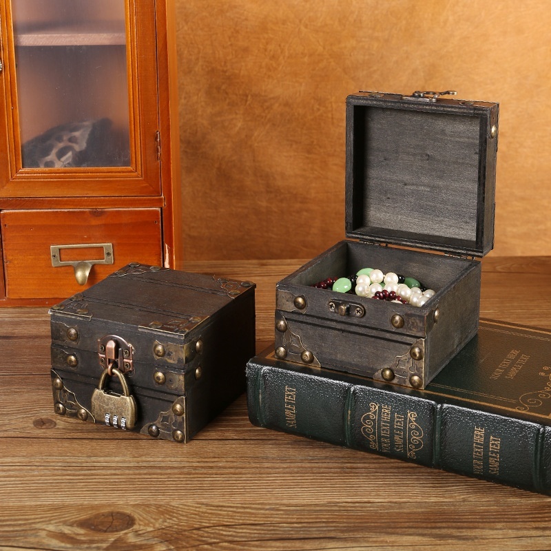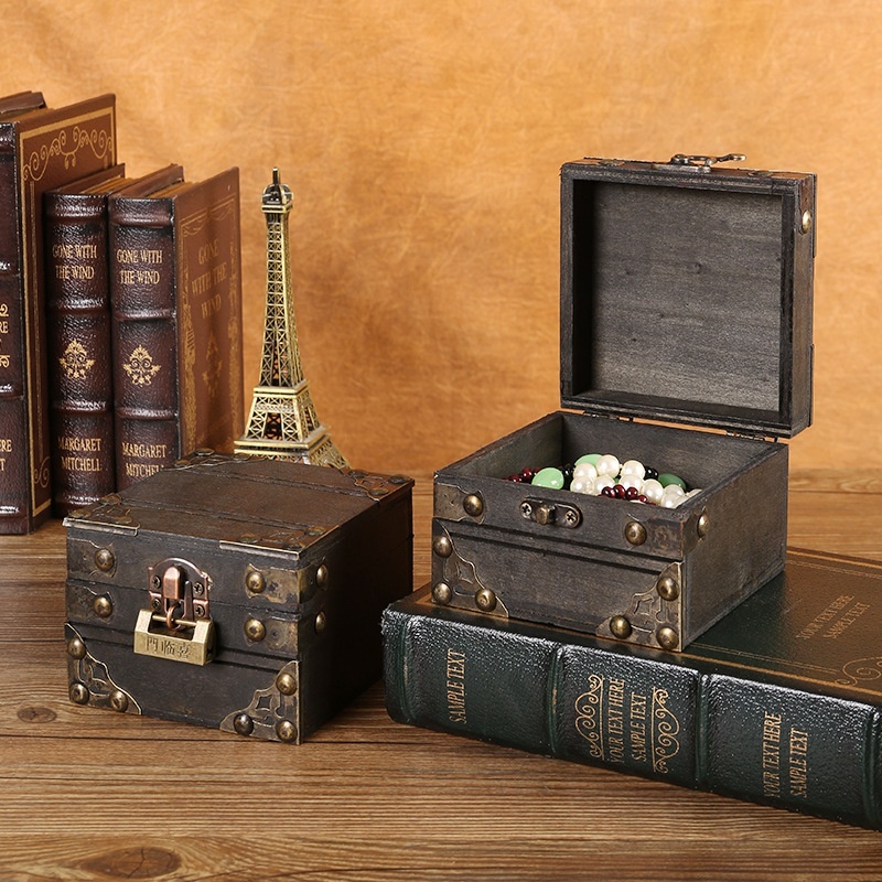 Retro European Storage Box Home Desktop Jewelry Ring Crystal Storage Wooden Small Square Box Treasure Chest