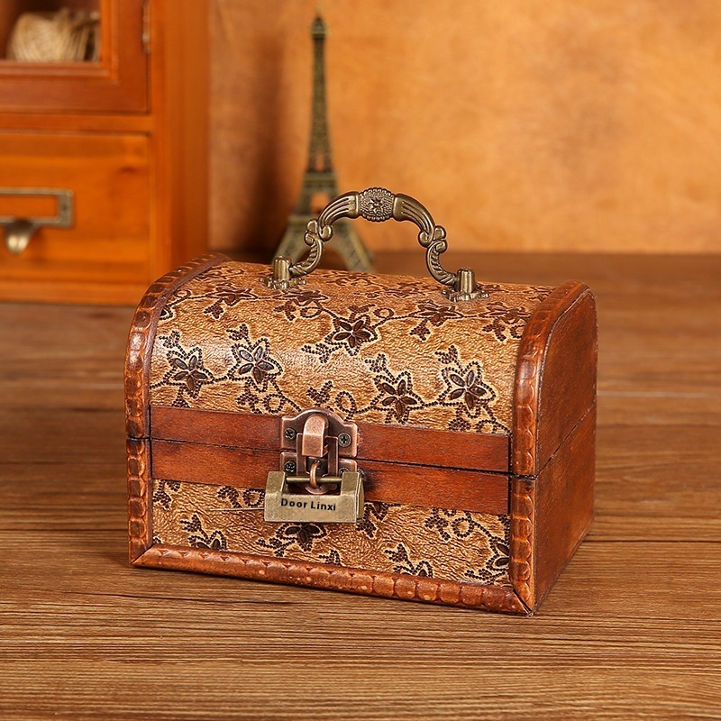 Retro Wooden Box Jewelry Storage Box With Lock Password Box Film And Television Decoration Props Leather Printing Box