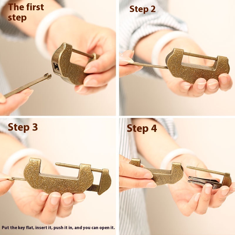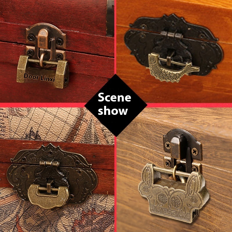 Antique Lock Retro Small Lock To Make Old Box Box Key Lock Horizontal Copper Lock Old-fashioned Anti-theft Decorative Password Lock