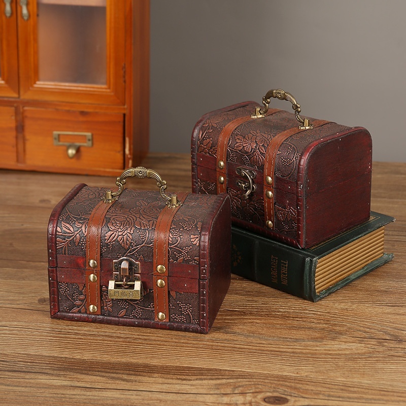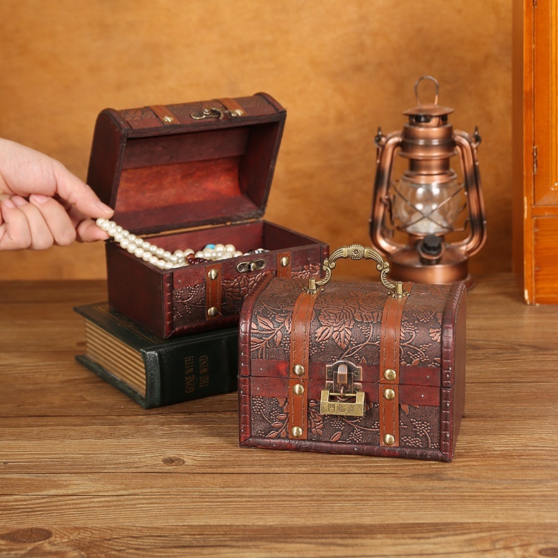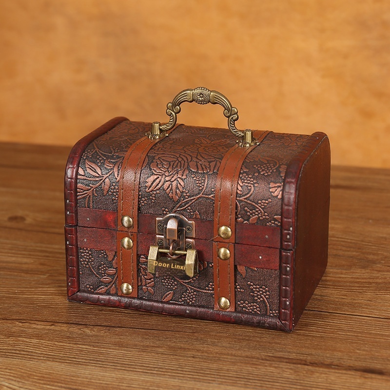 Retro Chinese Wooden Box With Lock Pirate Treasure Chest Film And Television Shooting Prop Box Storage Box With Lock Jewelry Wooden Box