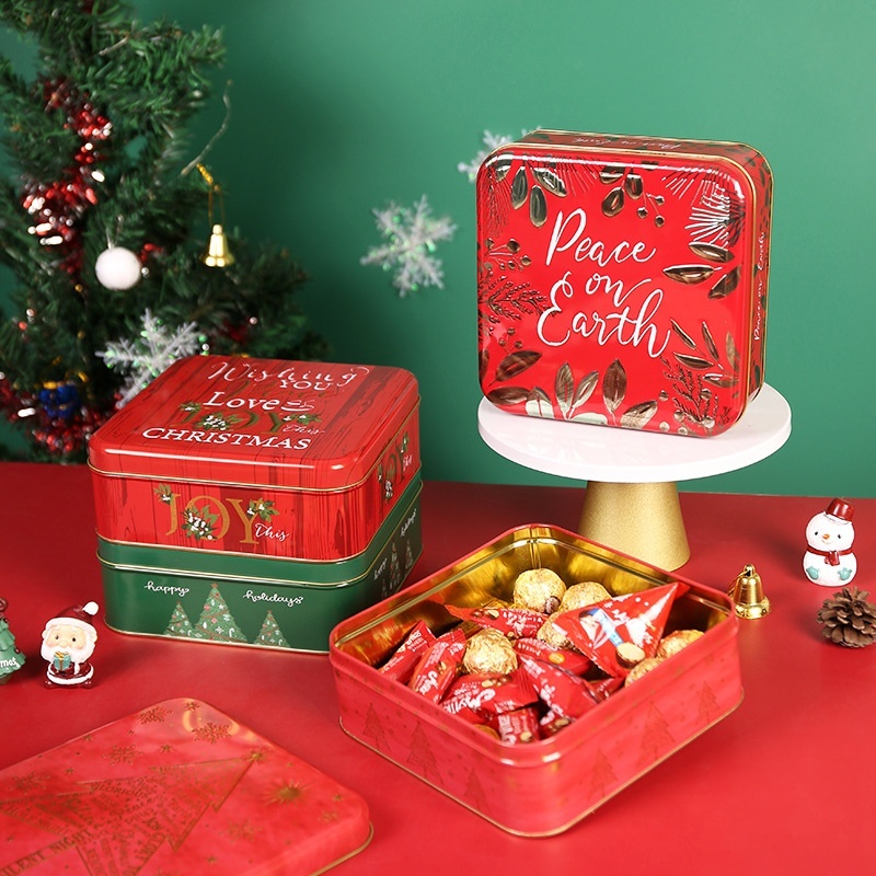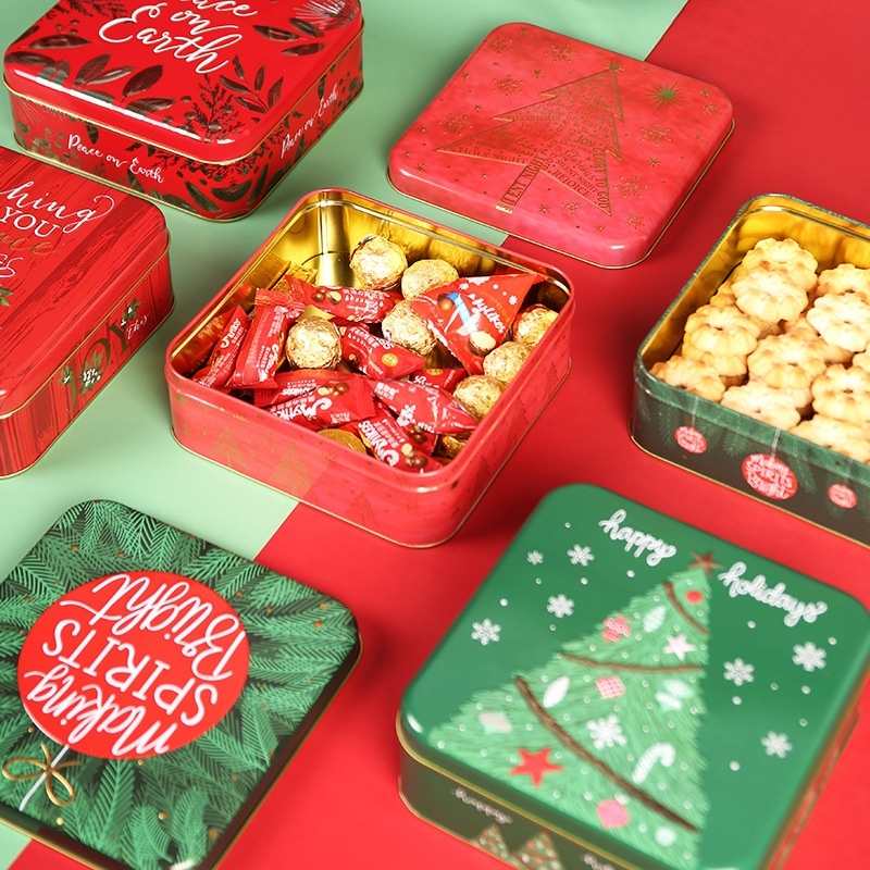 Creative Christmas Gift Box Candy Biscuits Chocolate Packaging Tinplate Empty Box European Style Souvenir Christmas Gift