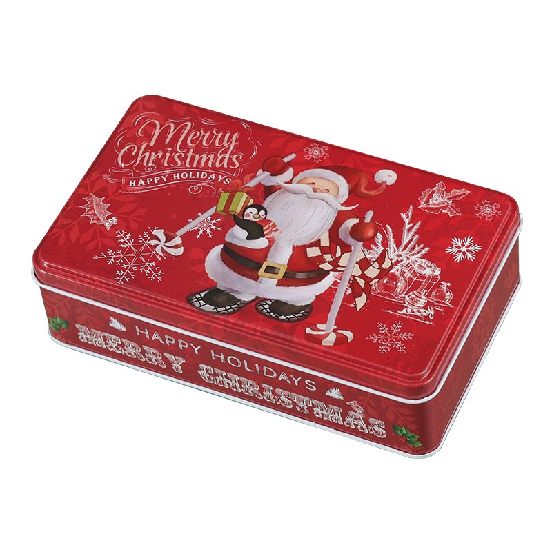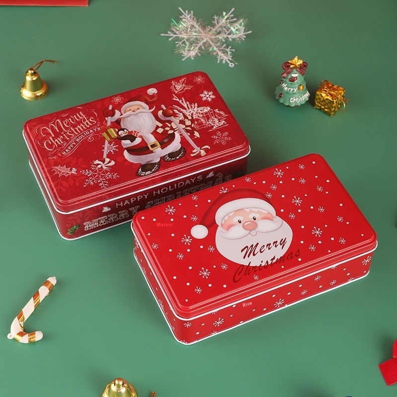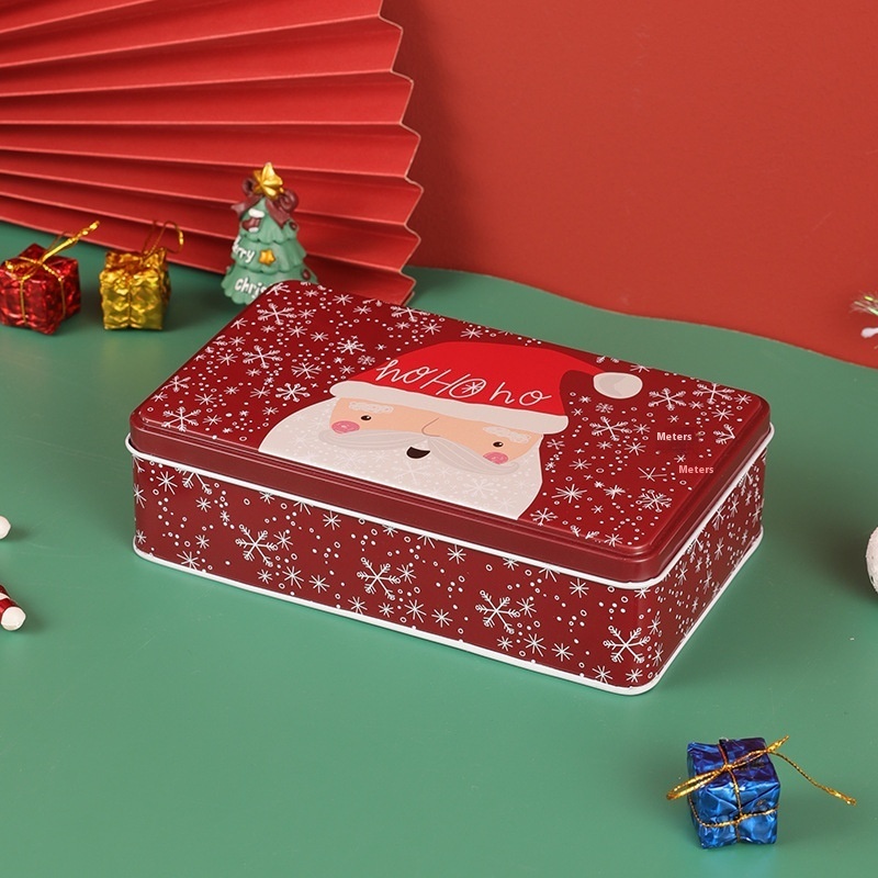 Christmas Rectangular Santa Claus Candy Box Tinplate Biscuit Chocolate Gift Packaging Tin Box Storage