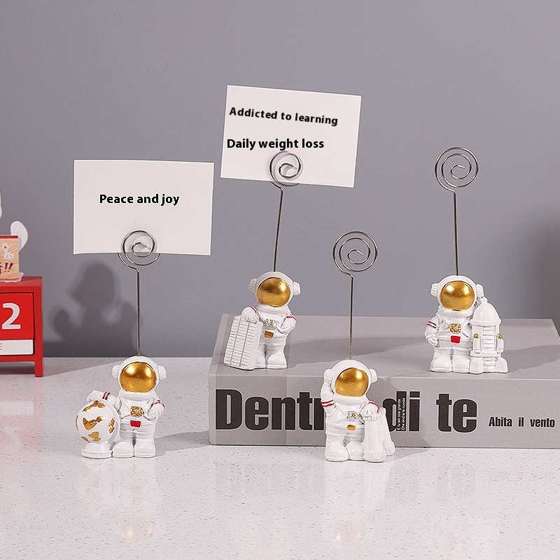 Creative Three-dimensional Mini Astronaut Spaceman Business Card Holder Desktop Photo Holder Desktop Small Ornaments Resin Crafts