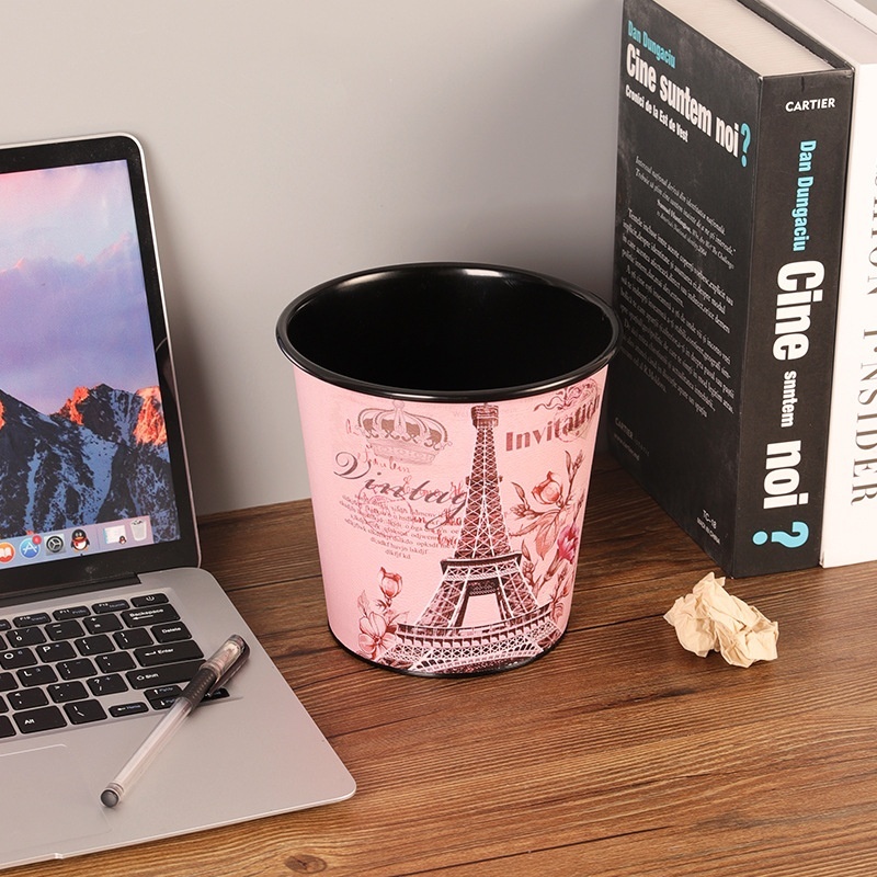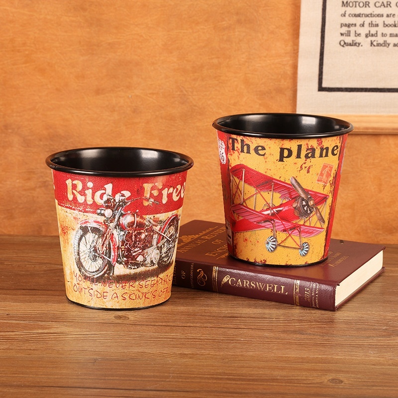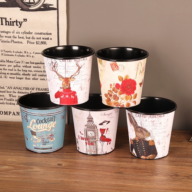 Retro Iron Thick Desktop Trash Can Without Cover Home Living Room Dining Table Tabletop Fruit Peel Garbage Storage Bin