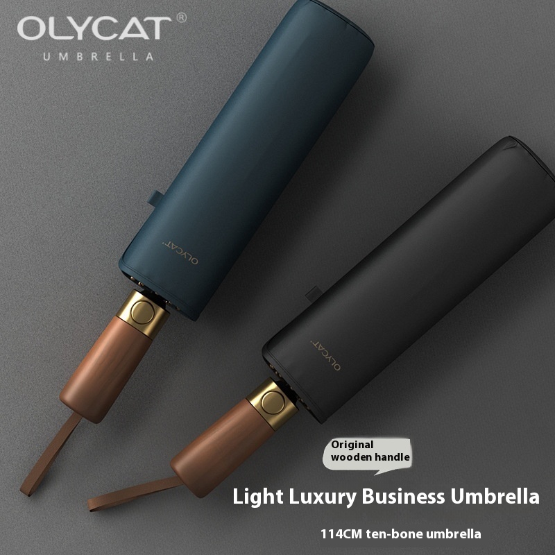 OLYCATMen's10 Bone Solid Wood Business Thickened Fully Automatic Umbrella Sunny Umbrella Folding Reinforcement Wind Resistance