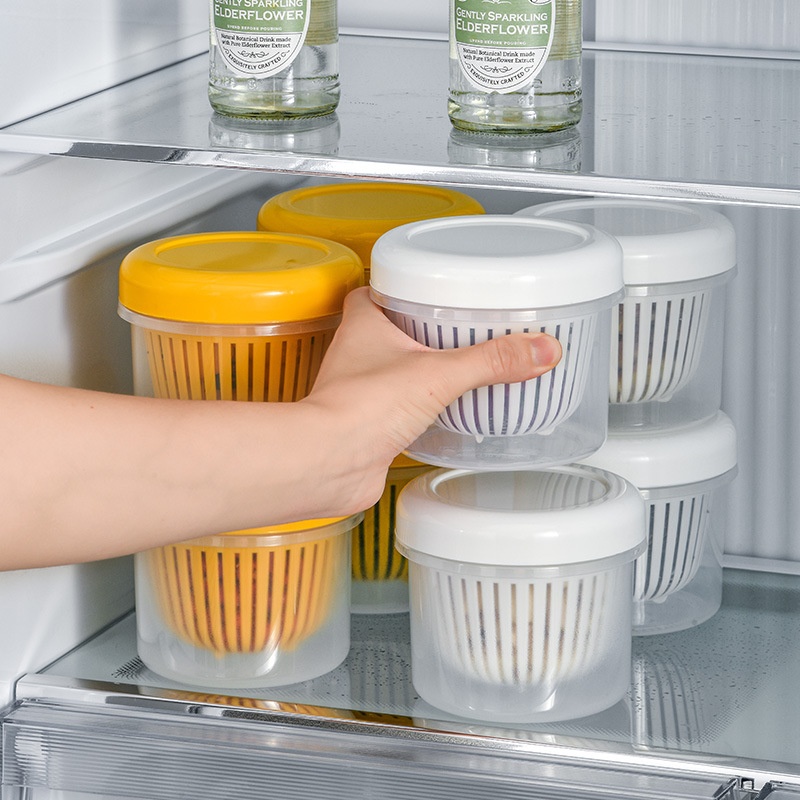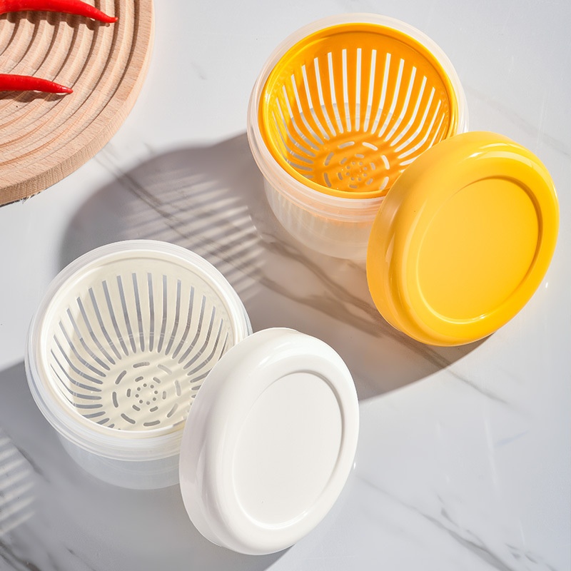 Fresh-keeping Kitchen Storage Box Fresh-keeping Box Drain Round Grain Chopped Green Onion Household Refrigerator Fresh-keeping Box Thickened Sealed Jar