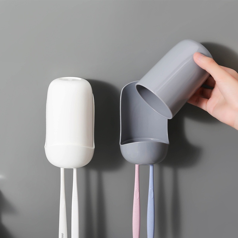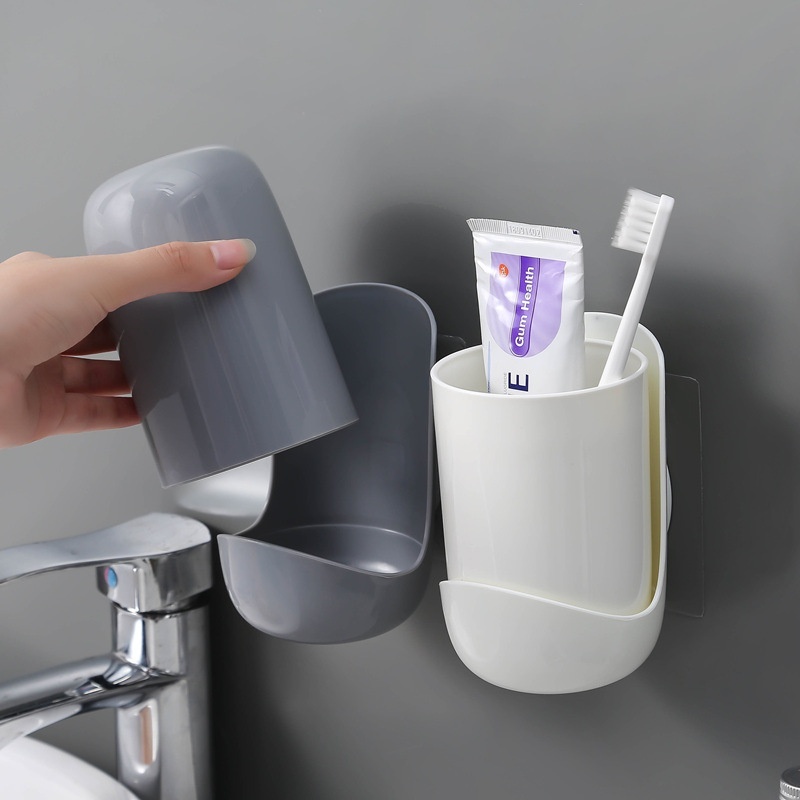 Creative Simple Toothbrush Rack Suction Wall-mounted Couple Bathroom Toothpaste Tooth Tube Storage Mouthwash Cup Set