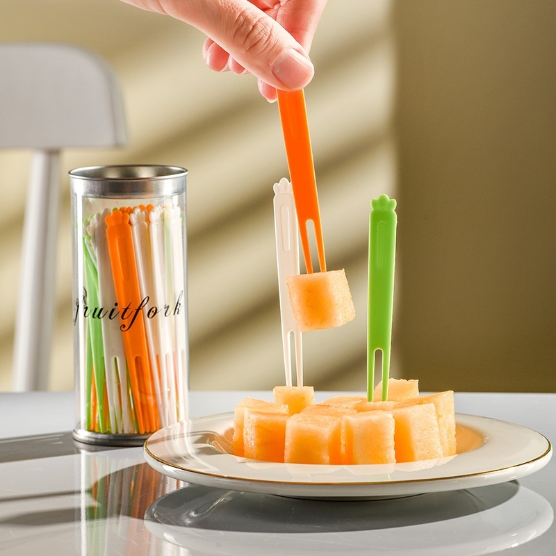Creative Cartoon Plastic Carrot Household Fruit Fork Children's Lunch Fruit Pick Cute Cake Dessert Small Fork
