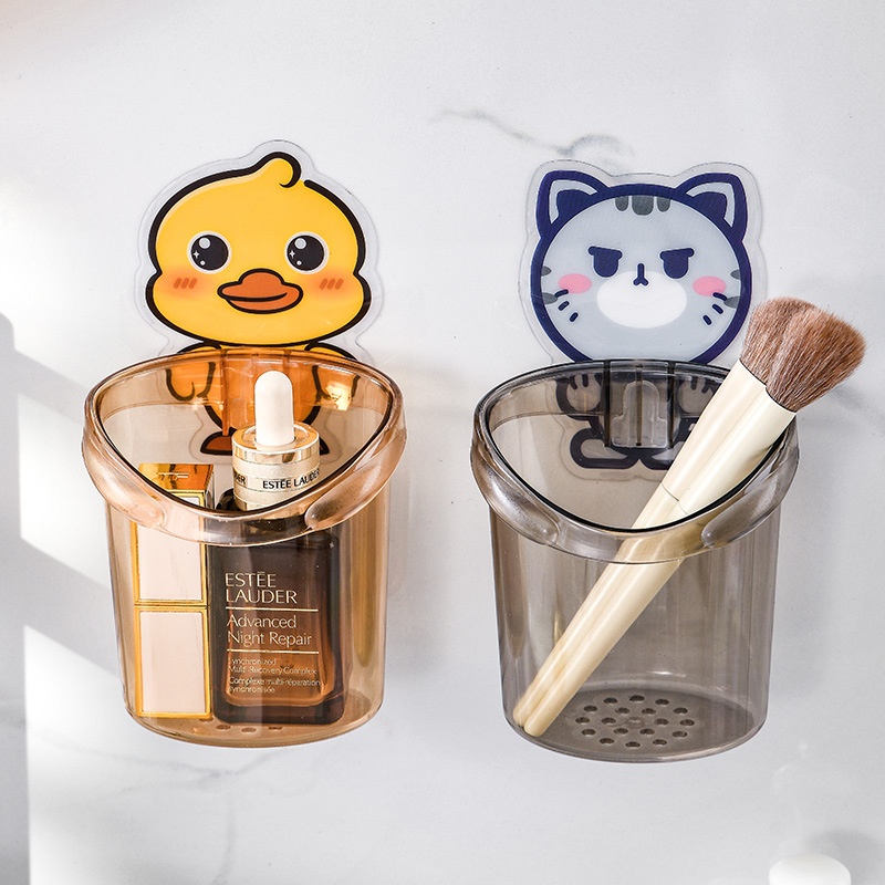 Genius Little Yellow Duck Storage Bucket Punch-free Plastic Cute Toothbrush Toothpaste Storage Box Wall-mounted Storage Cup