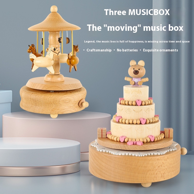 Wooden Music Box Carousel Music Box Diy Creative Toy Decoration Birthday Gift Mother's Day