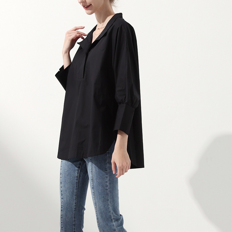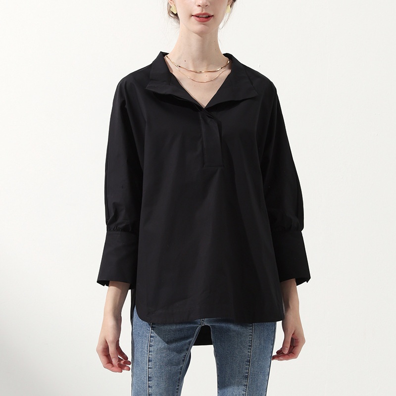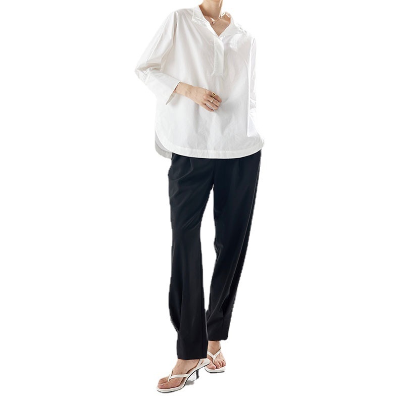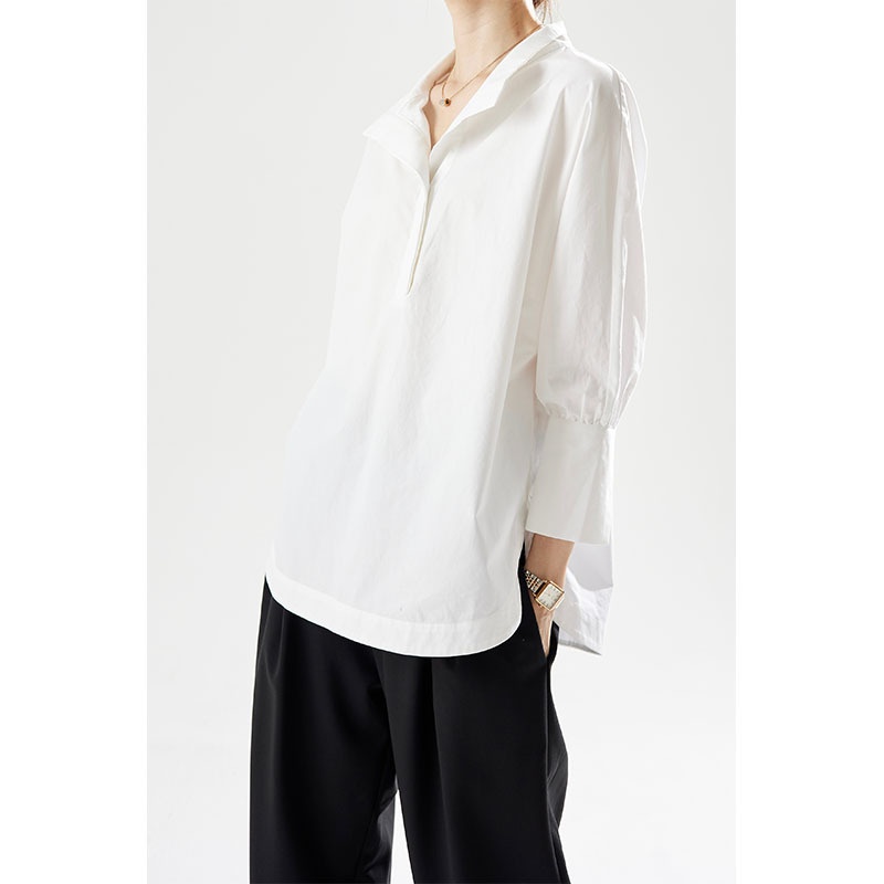 Spring And Autumn Women's Splicing Design Niche White Temperament Commuter Long-sleeved Shirt Tops Pure Cotton