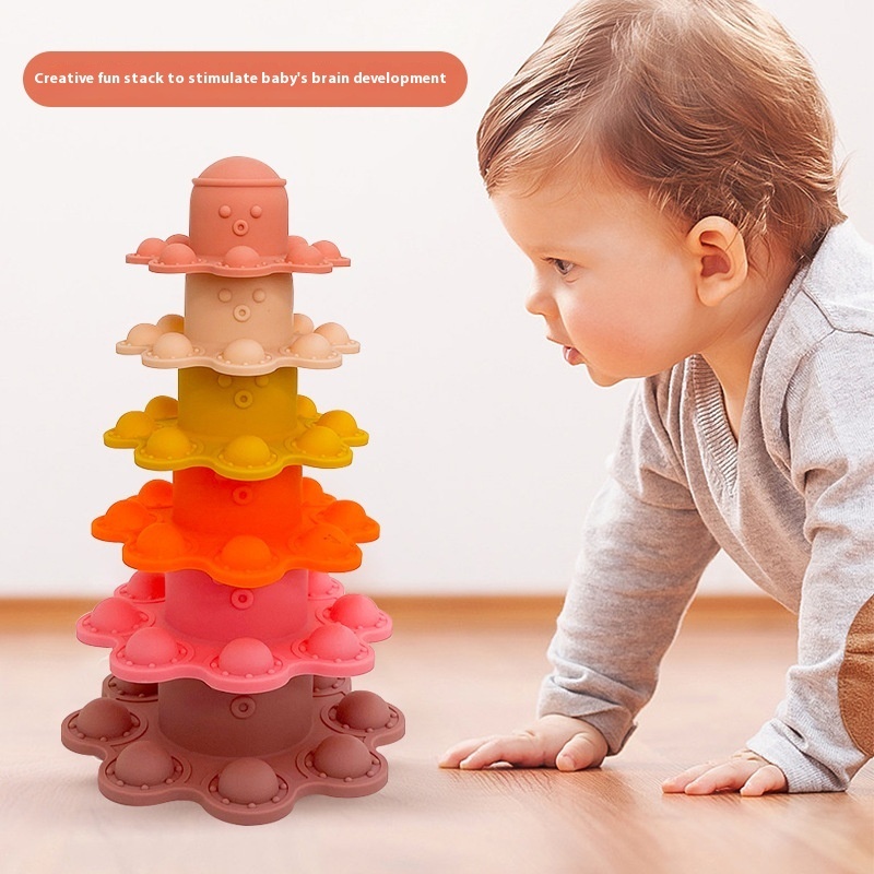 Silicone Children's Octopus Stacking Creative Cartoon Stacking Ring Baby Early Education Educational Stacking Ring Toy