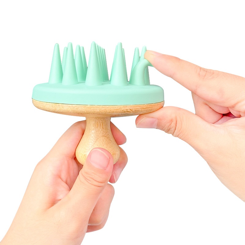 Silicone Shampoo Massage Brush Bamboo Handle Shampoo Comb Clean Scalp Japanese Brush Head Meridian Massager Shampoo Brush