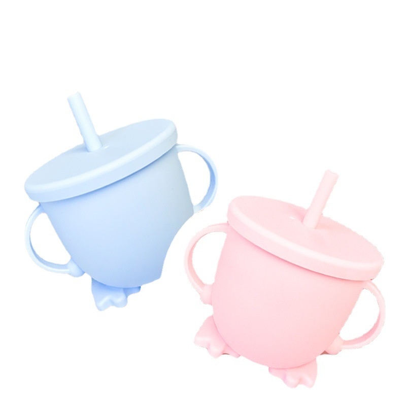 Food Grade Baby Drinking Water Learning Cup Double Ear Anti-fall Silicone Snack Straw Cup Children's Milk Water Cup