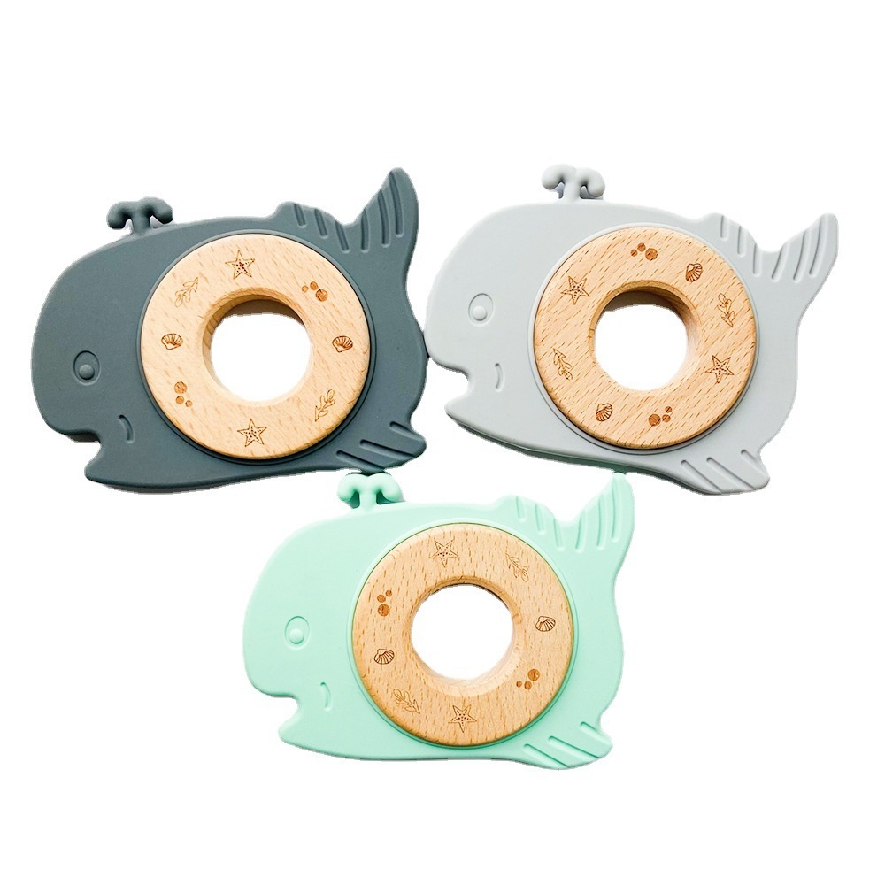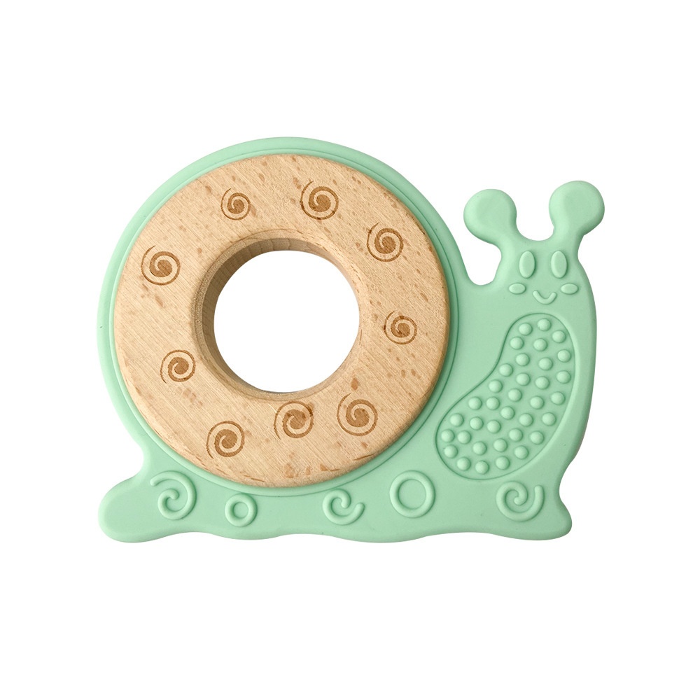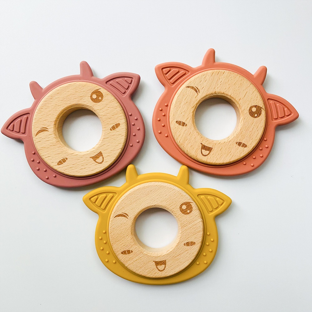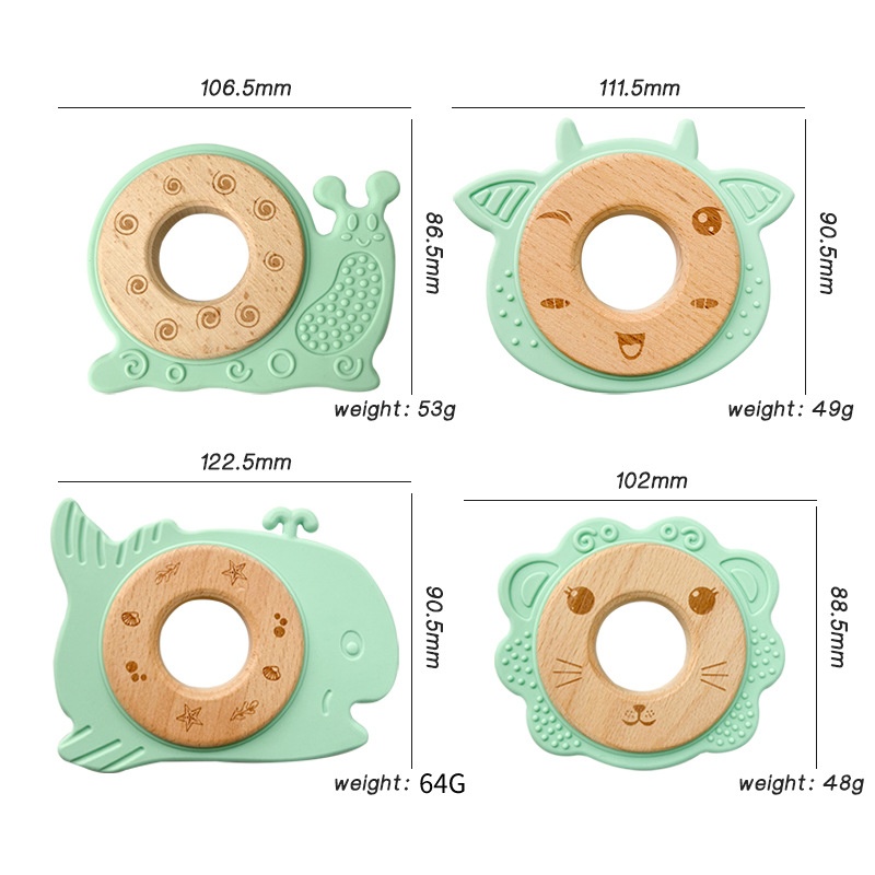 Cartoon Animal Wooden Ring Chewing Gum Children Soothing Anti-eating Hand-held Toys Food Grade Baby Teething Stick Silicone Teether