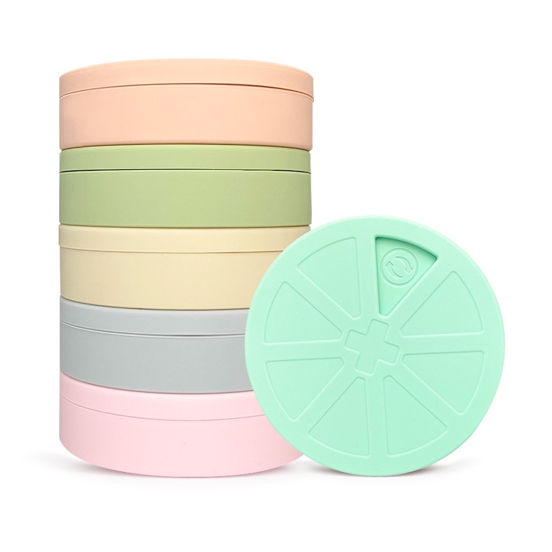 Custom Silicone Medicine Box Round Portable Partition Dustproof Seven-day Emergency Medicine Storage Box With Lid Medicine Box Food Grade