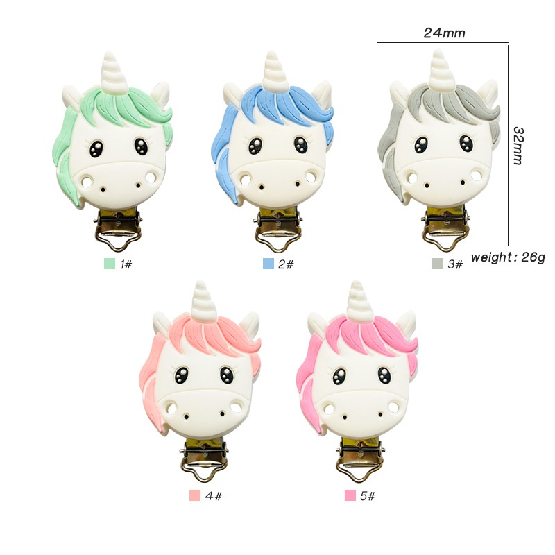 Silicone Pacifier Clip DIYTeether Pacifier Anti-drop Chain With Hole Accessories Unicorn Pacifier Clip Iron Clip