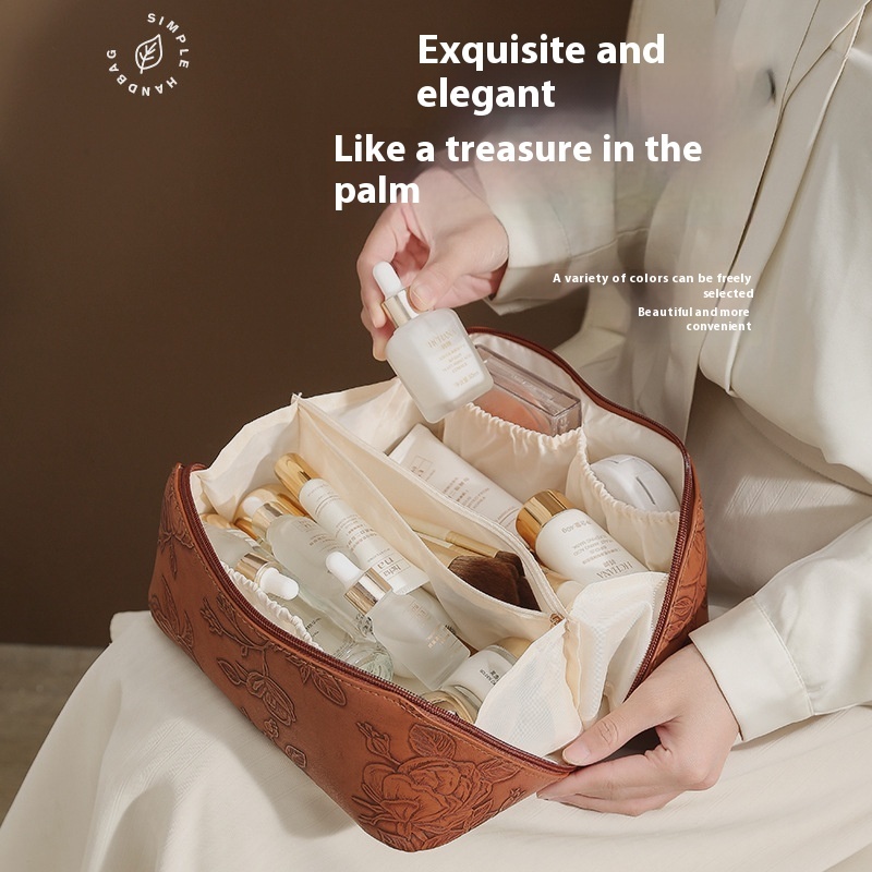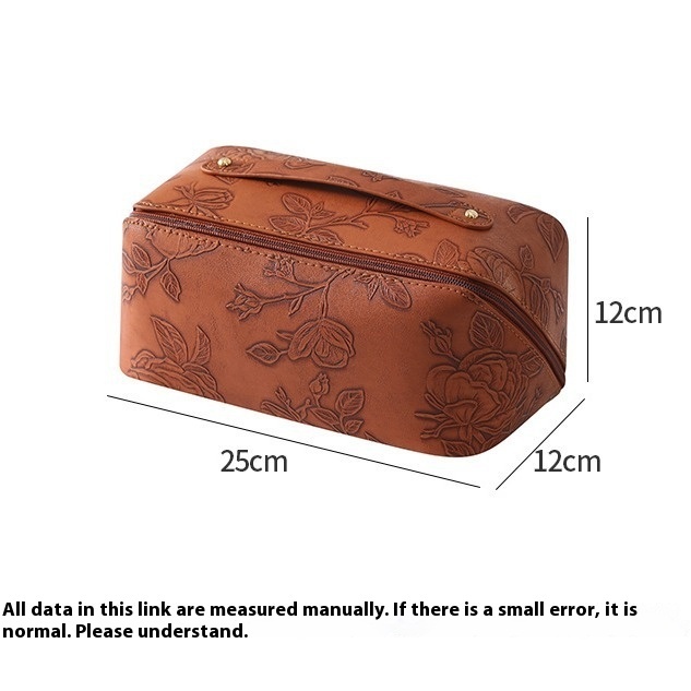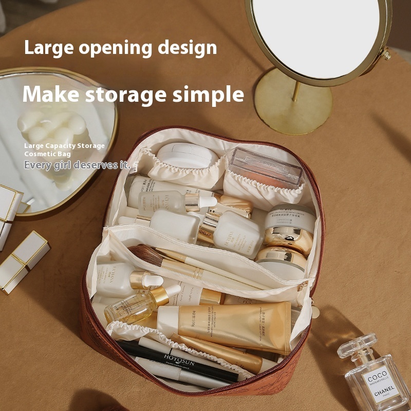 Fashion Retro Color Cosmetic Bag Large Capacity PULight Luxury Wash Bag Portable Cosmetic Storage Bag