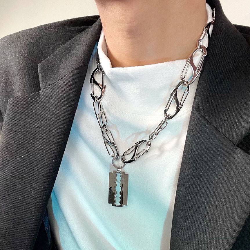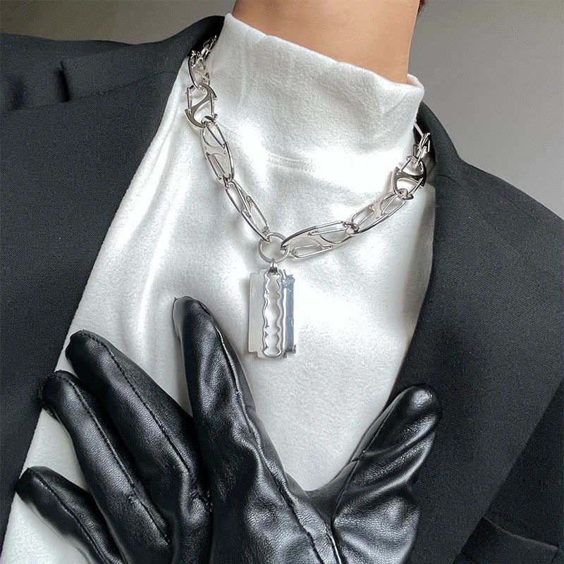 National Necklace European And American Hip-hop Men And Women Accessories Couple Blade Razor Titanium Steel Pendant Necklace Personality Cool
