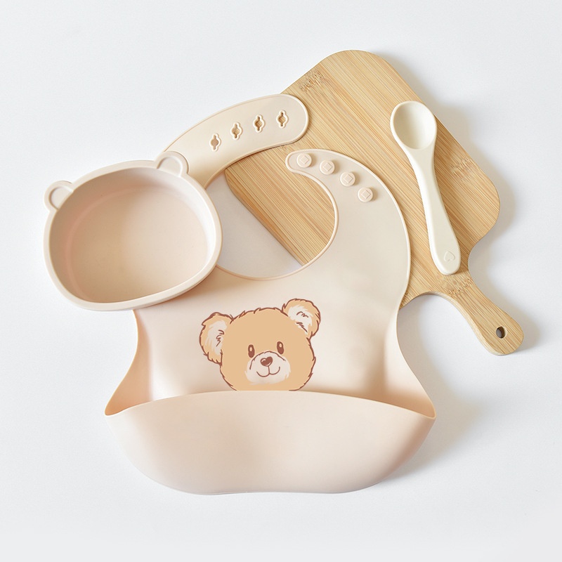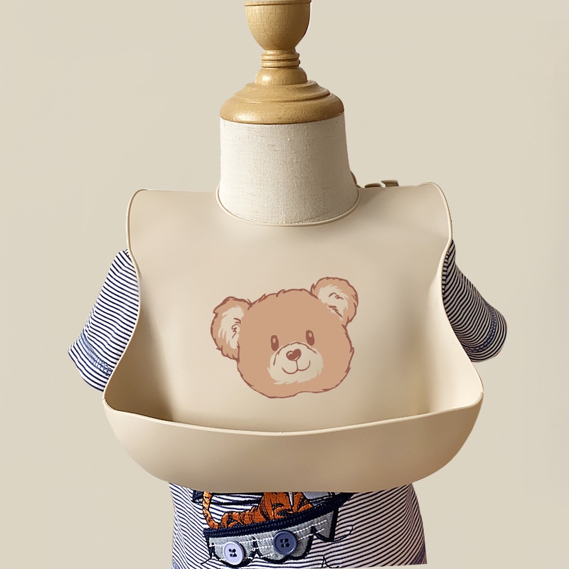 Food Grade Silicone Bear Bib Baby Super Soft Baby Eating Food Supplement Bib Portable Waterproof And Anti-dirty
