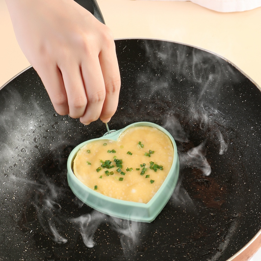 Creative DIYSilicone Fried Egg Mold Round Omelette Maker With Handle Fried Egg Poached Egg Heart Shaped Mold