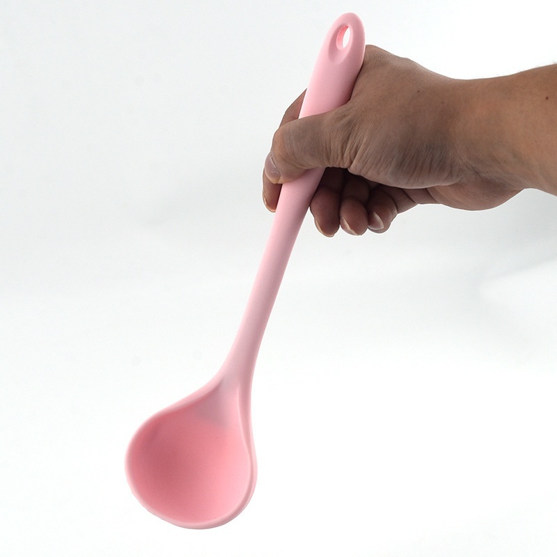 Children's Food Supplement Soup Spoon Integrated Full-cover Silicone Long Handle Large Soup Spoon Hot Pot Spoon Porridge Spoon Kitchen Cooking Tools