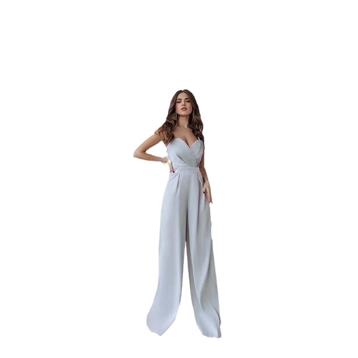 European And American Jumpsuit Temperament Commuting Straight High Waist Pink Jumpsuit Trousers Wide Leg Pants
