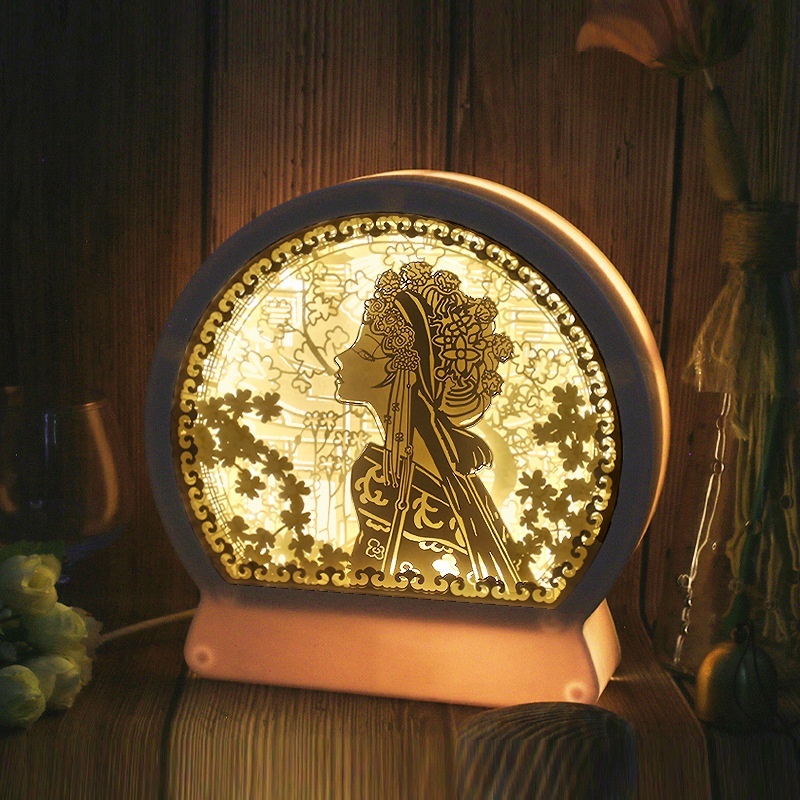 National Peking Opera Huadan Ancient Style Plug-in Night Light Creative Gift Semi-circular Frame3d Three-dimensional Light And Shadow Paper Sculpture Lamp