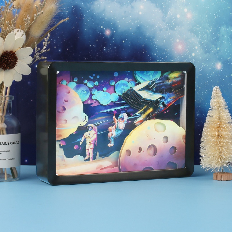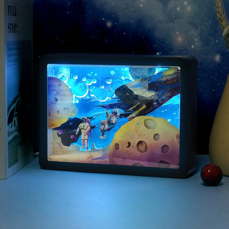 Mirror Paper Sculpture Lamp Creative Gift Bedroom Decoration Lamp Mirror Ancient Wind Wave Custom Surround Small Night Light Bedside Lamp