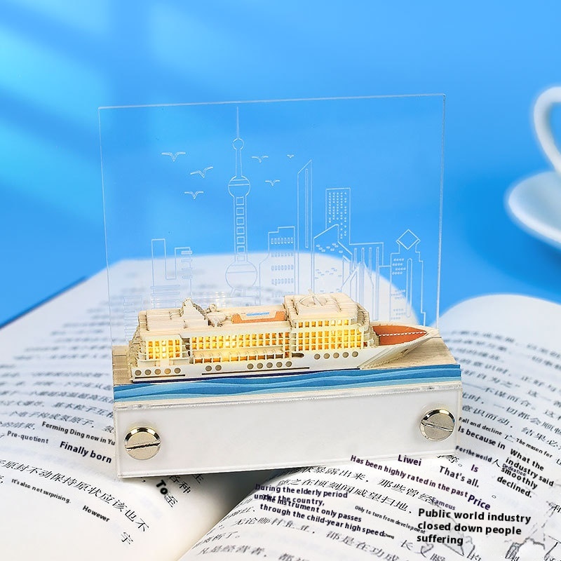 Port Cruise Ship3d Three-dimensional Paper Sculpture Note Paper Creative Gift Ship Model Seaside Beach Ornaments