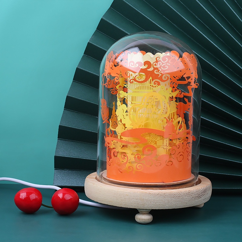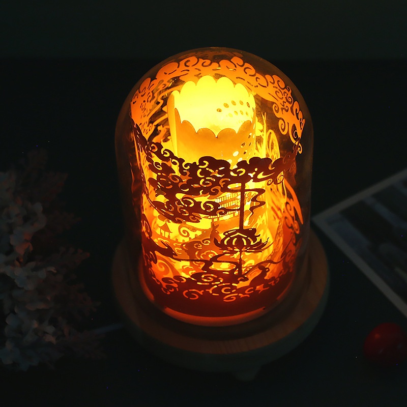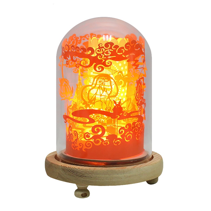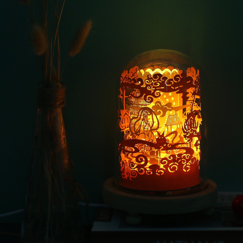 Three-dimensional Night Light Creative Festival Atmosphere Gift Solid Wood Base3d Panoramic Light And Shadow Paper Sculpture Lamp