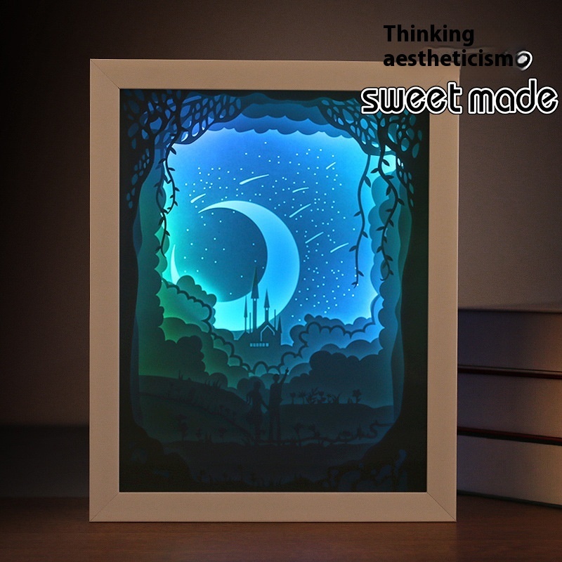 Light And Shadow Paper-cut Lamp Moonlight Lover Creative Personal Company Event Gift Lamp One Piece3d Three-dimensional Paper Sculpture Lamp