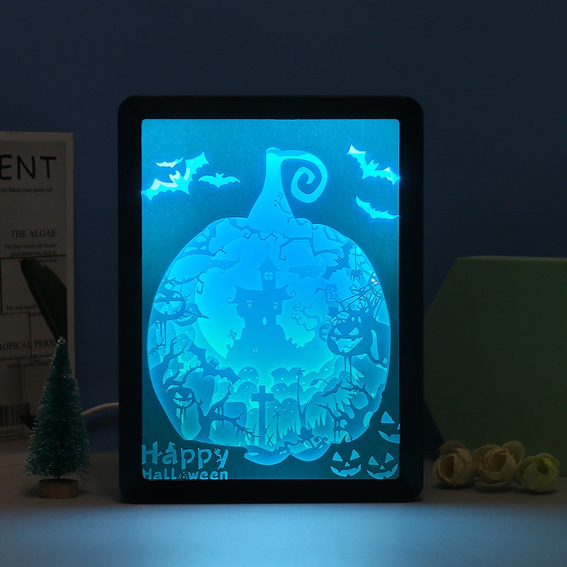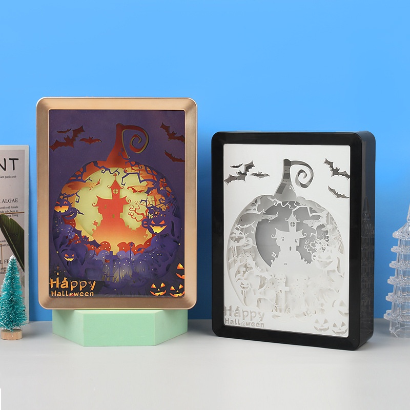 Halloween Paper Sculpture Lantern Event Scene Atmosphere Layout Paper Craft Gifts3d Stereo Light And Shadow Lamp