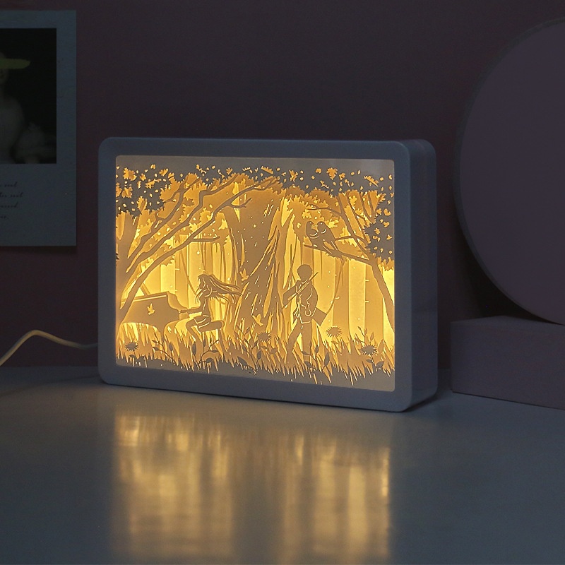 Qinyuan3 DThree-dimensional Paper Sculpture Lamp Piano Couple Encounter Creative Gift Laser Engraving Small Night Lamp