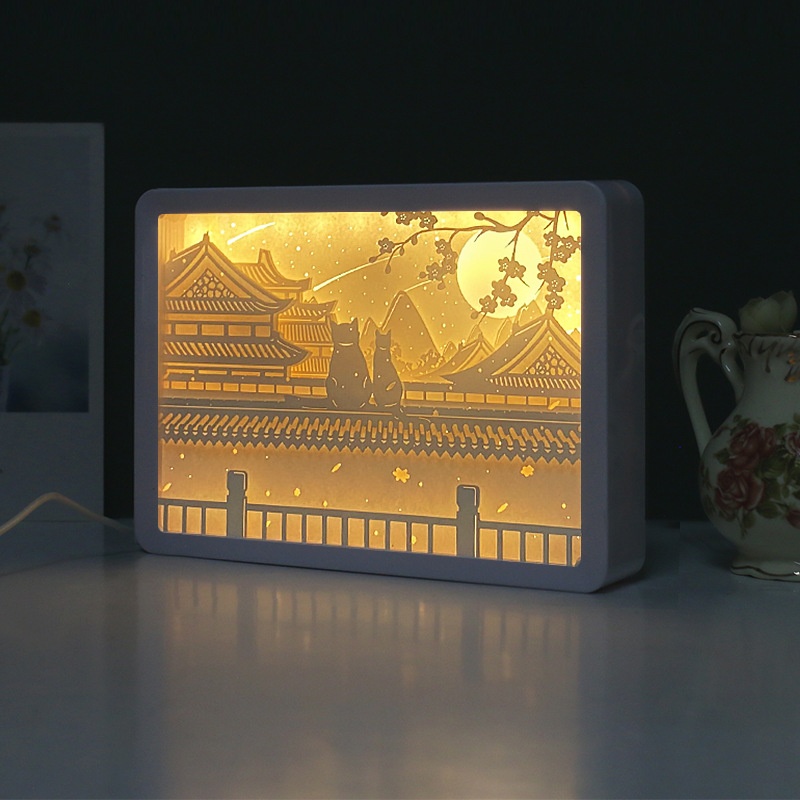 Forbidden City Cat Ancient Style National Tide3 DStereo Light And Shadow Paper Sculpture Lamp Creative Gift Gift Night Light Paper Cutting Lamp Customization