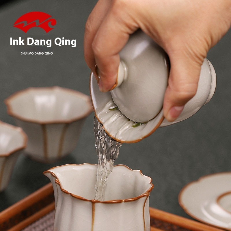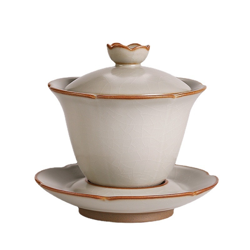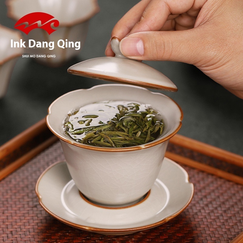 Taiwan Baiyun Ru Kiln Gold Thread Crackle Sancai Covered Bowl Can Be Raised To Brew Tea Bowl Home Can Be Raised Covered Bowl Tea Bowl Authentic