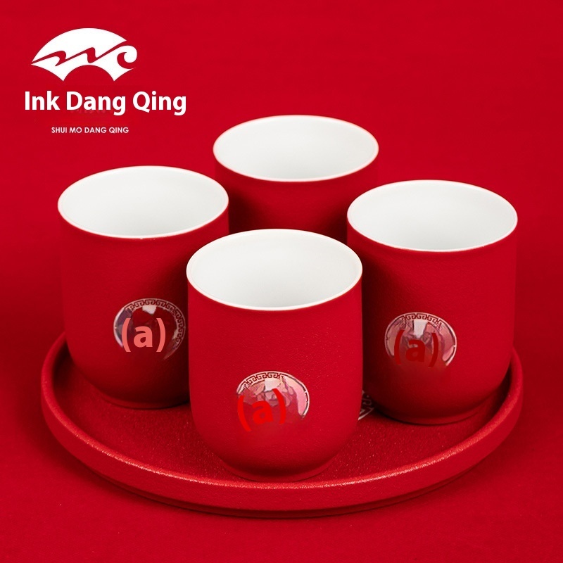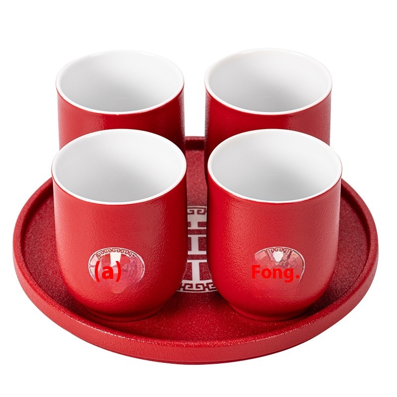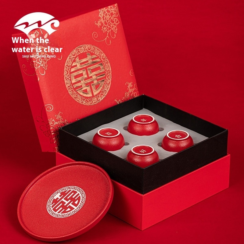 Wedding Wedding Cup Tea Cup Set Wedding Dowry Ceramic Bright Red Chinese Style Tea Cup Tray Gift Box