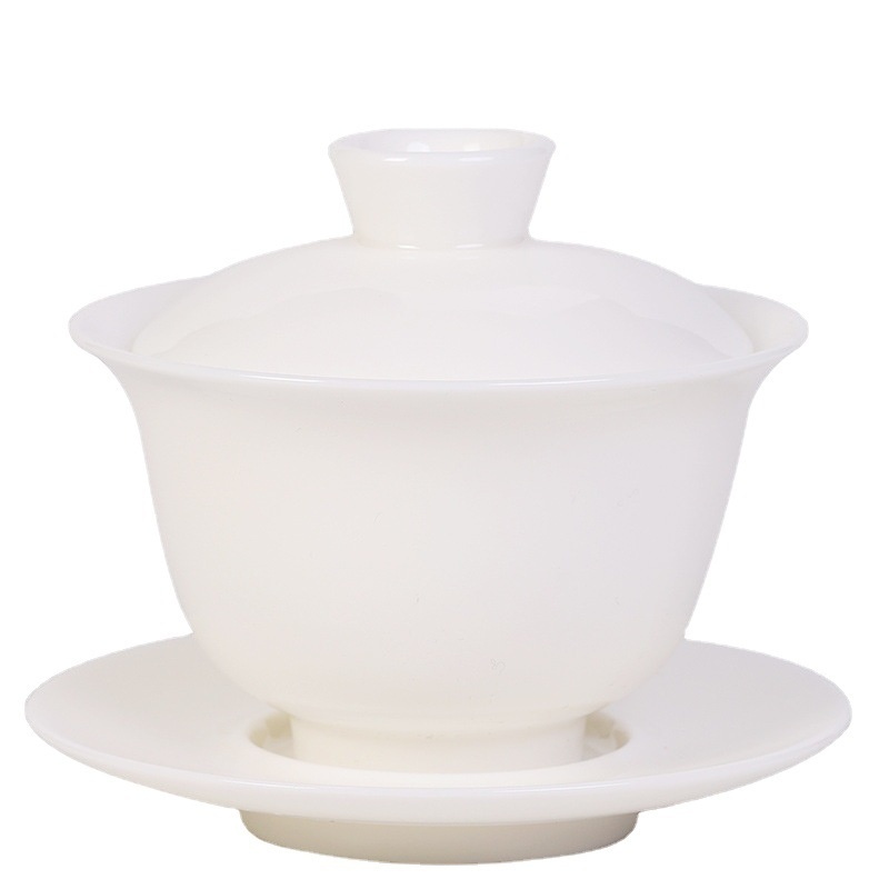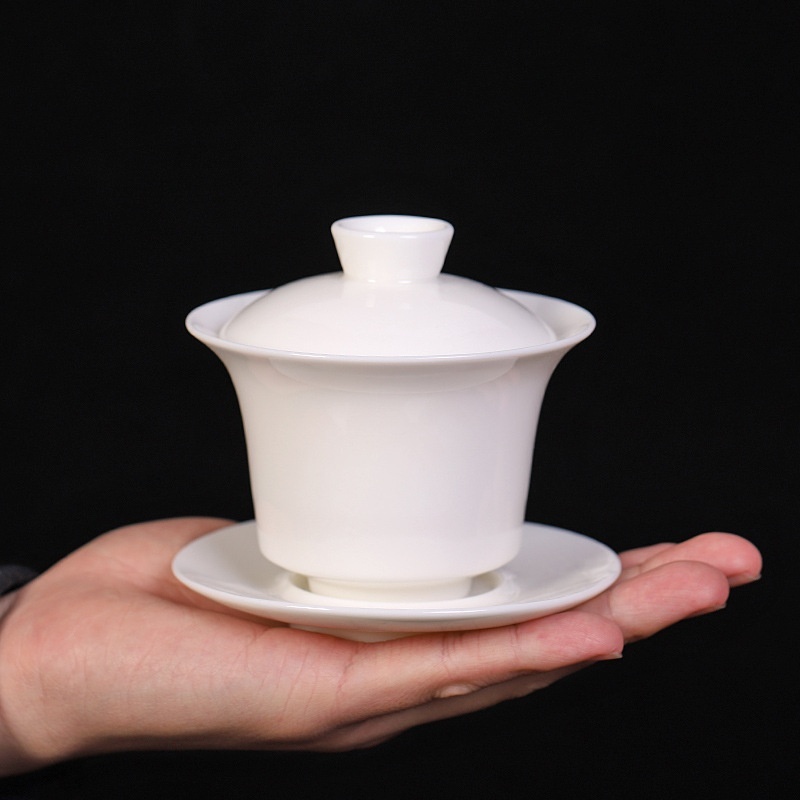 Gaiwan Dehua White Porcelain Sancai Gaiwan Thin-walled Mutton-fat Jade Large Covered Tea Bowl Ceramic Tea Set Tea Brewer