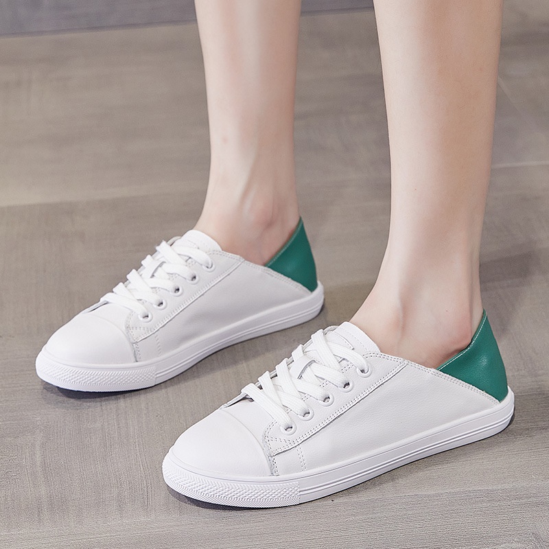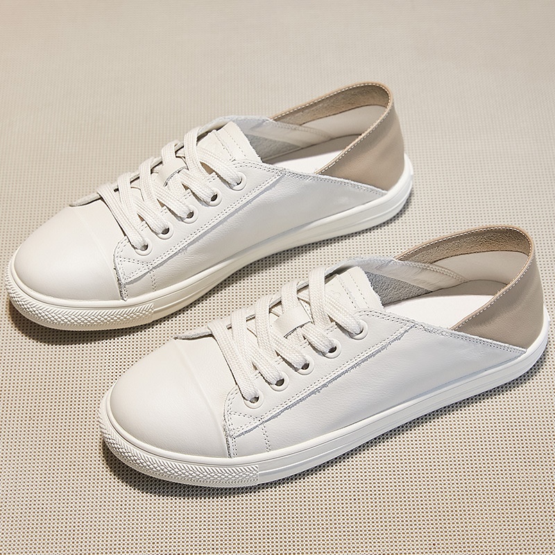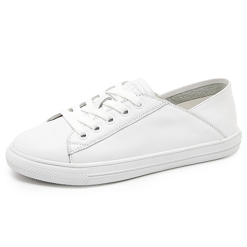 Top Layer Cowhide Genuine Leather White Shoes For Women Style Women's Shoes Lace-up Korean Style Low-top Casual Sneakers For Women Flat