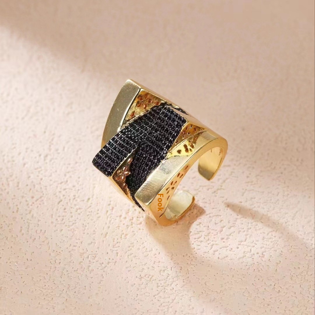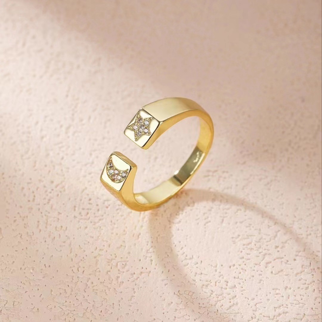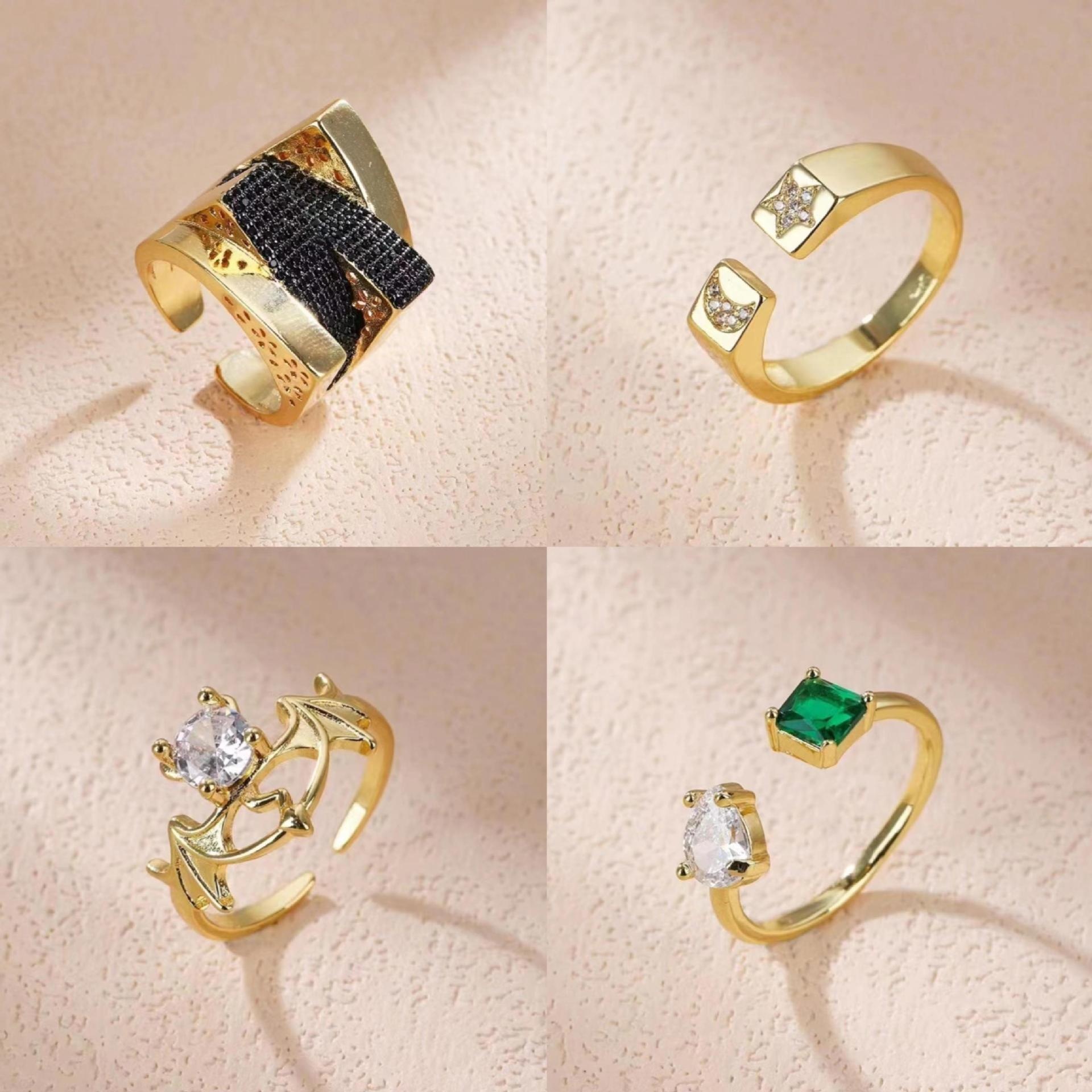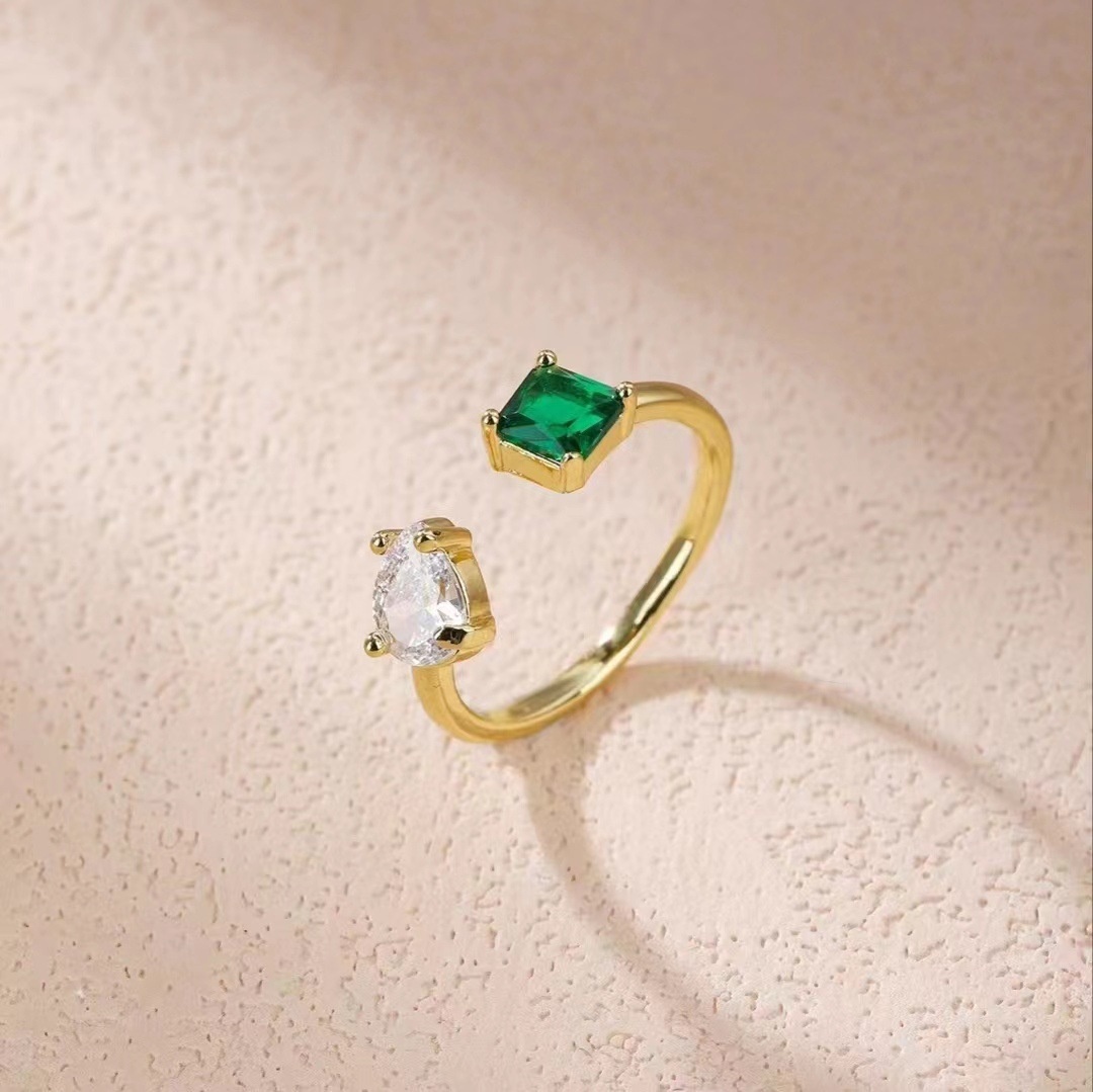 European And American Fashion Personality Open Ring Female Style Niche Design Emerald Micro Inlaid Zircon Star Ring