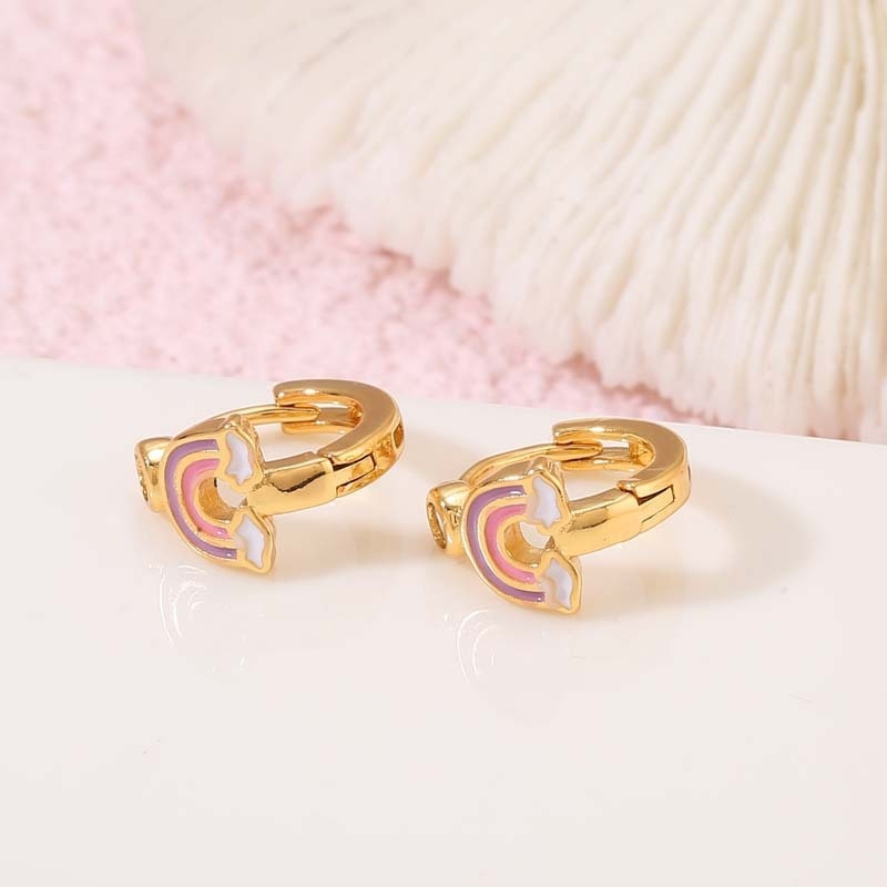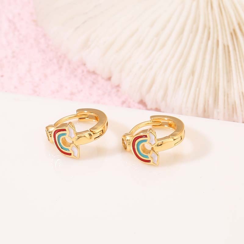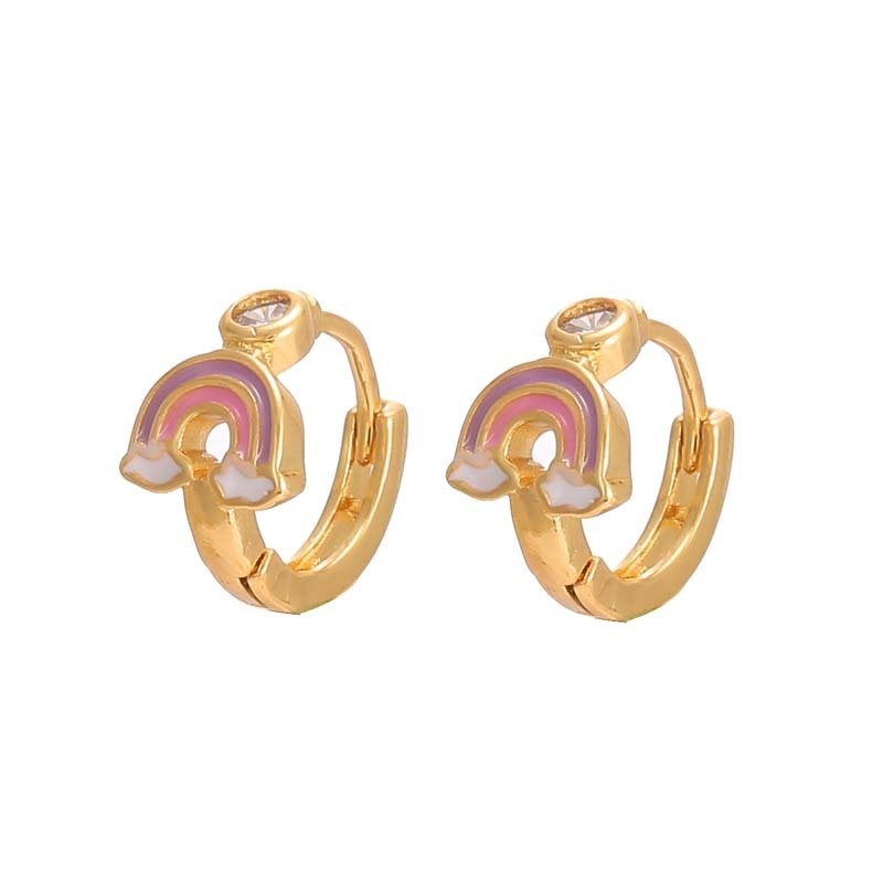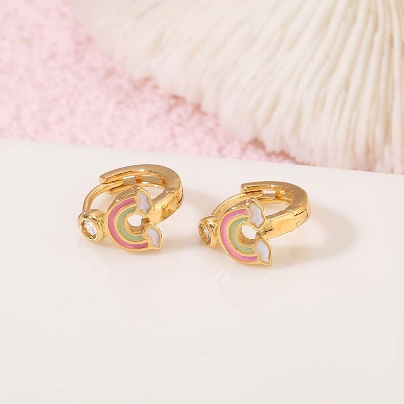 Small Fresh Japanese And Korean Style Exquisite Cute Rainbow Earringsy High-grade14k Zircon Ear Buckle Female Oil Drop Earrings