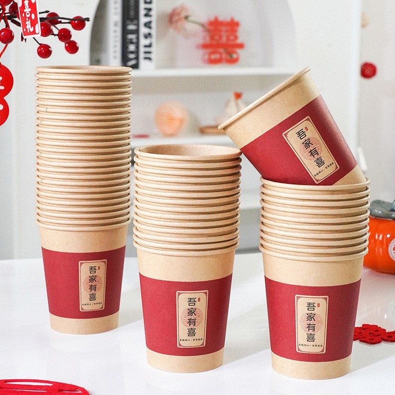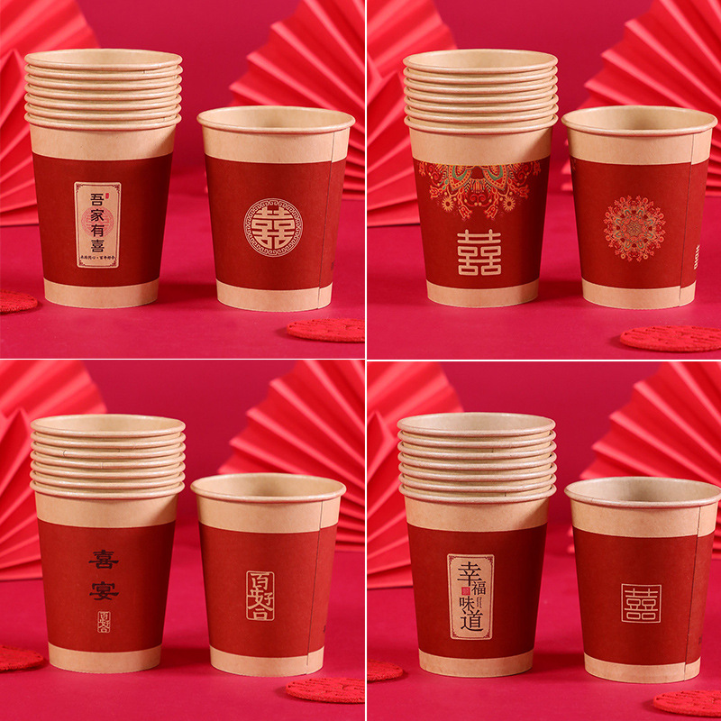 Wedding Thickened High-end Wood Pulp Wedding Paper Cup Wedding Disposable Paper Cup Wedding Supplies Red Cup