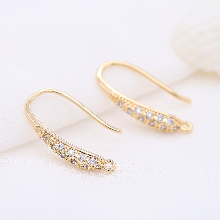 Korean Copper Plated14 KReal Gold Micro-inlaid Zircon Ear Hook DIYHandmade Earrings Earring Accessories Material Direct