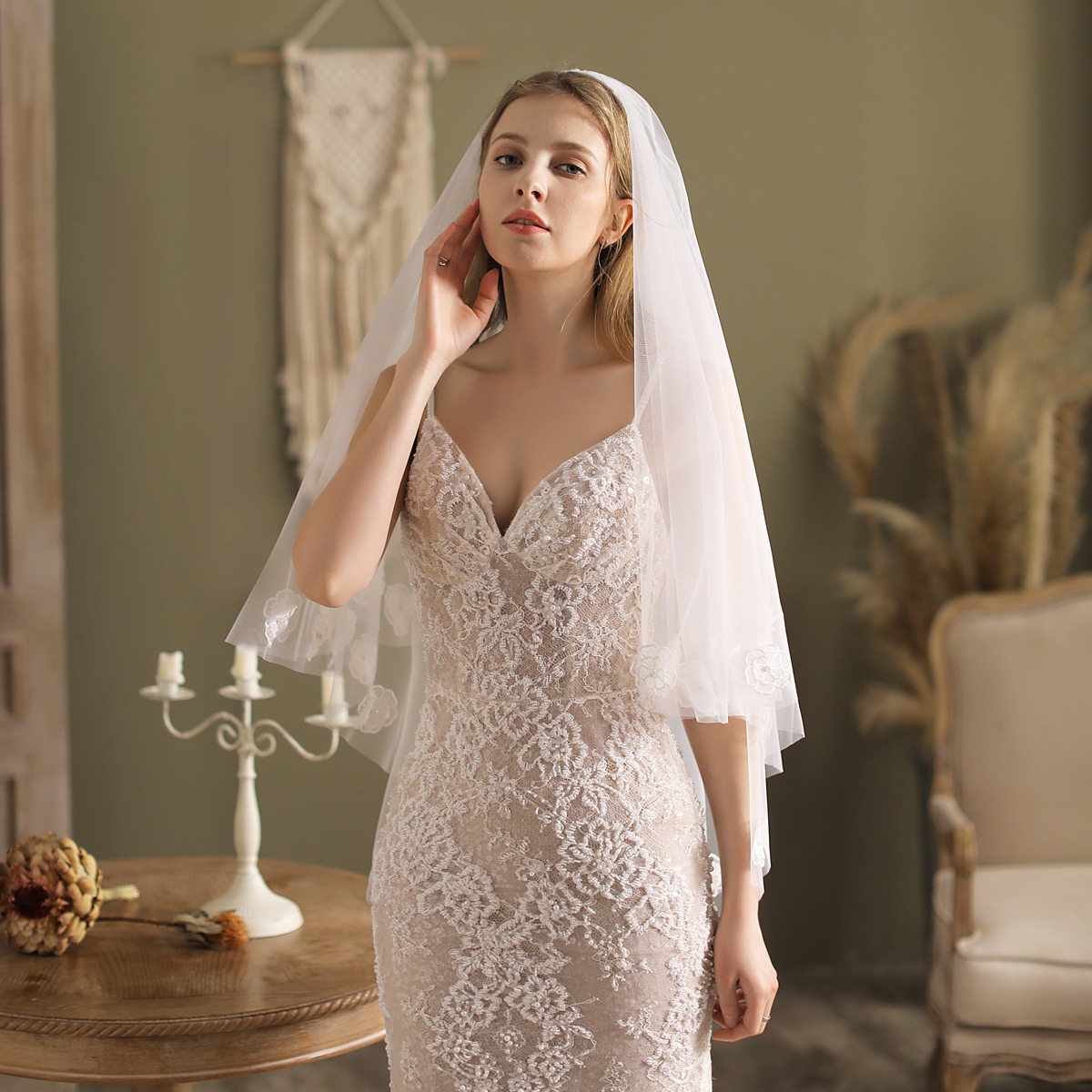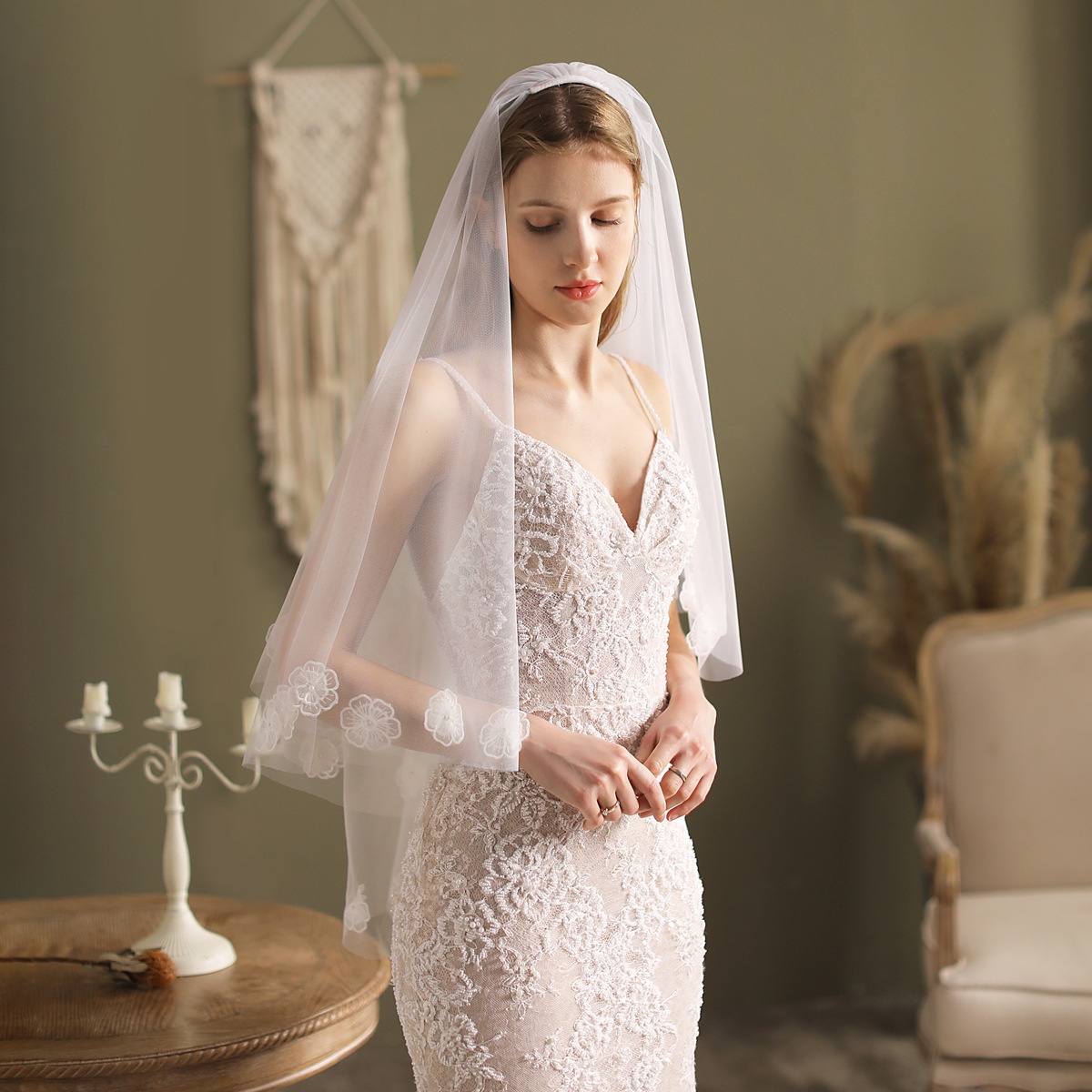 V816 Exquisite Lace Flower Pearl Wedding Veil Super Fairy Double Layer Wedding Dress Bridal Headdress