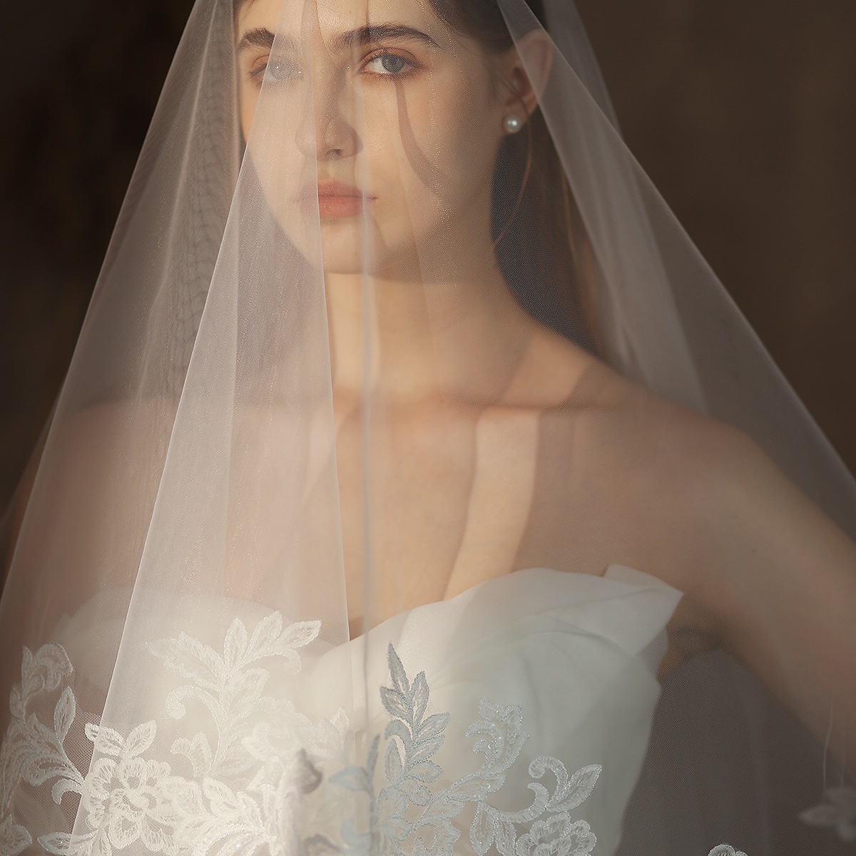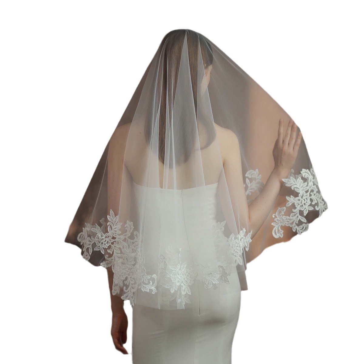 V304 Double-layer Super Fairy Lace Large Flower Bridal Veil White Photo Props Retro Light Luxury Wedding Veil