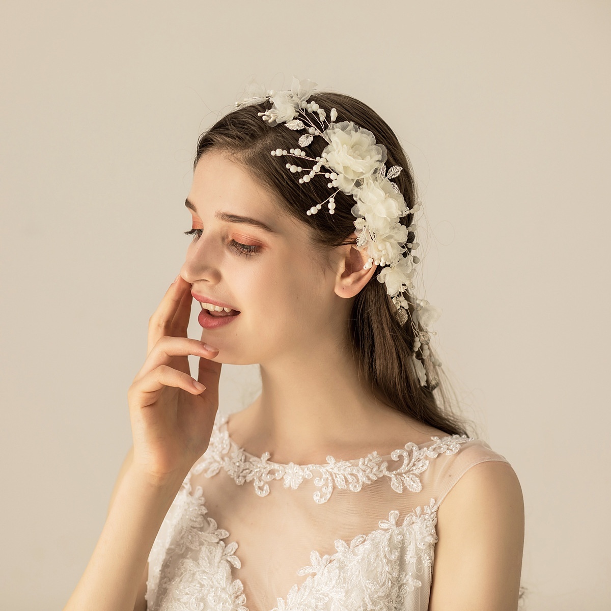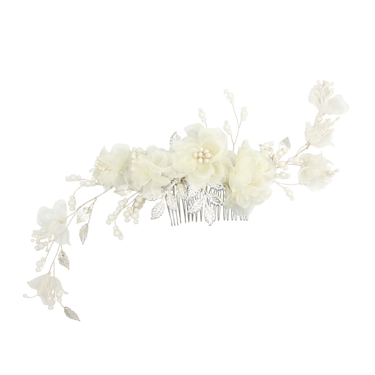 O564 Forest Fairy Flower Headdress Exquisite Beaded Silver Leaf Hair Comb Bridal Wedding Dress Hair Accessories