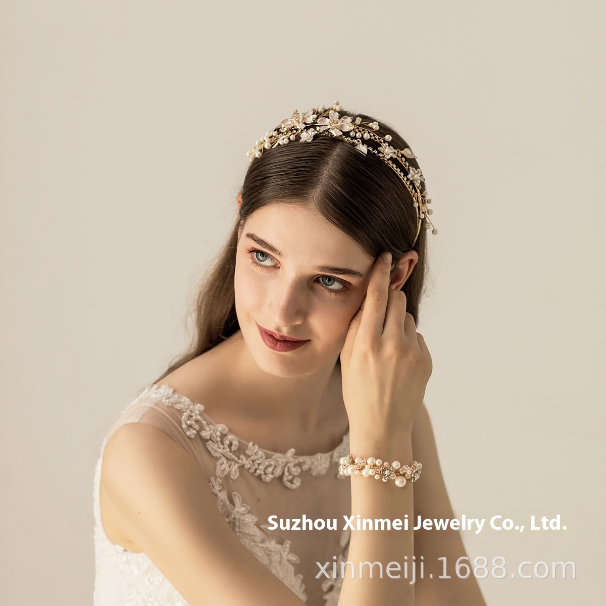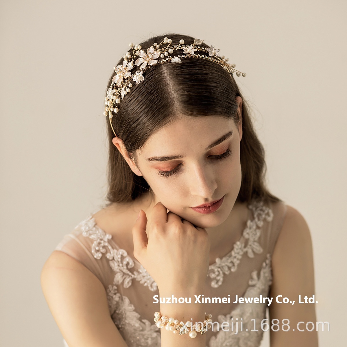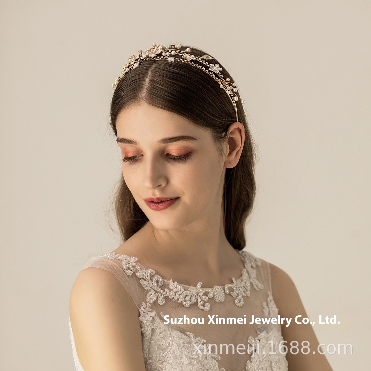 O574 Bridal Wedding Headband Exquisite Alloy Diamond-studded Large Flower Hair Accessories Wedding Dress Accessories