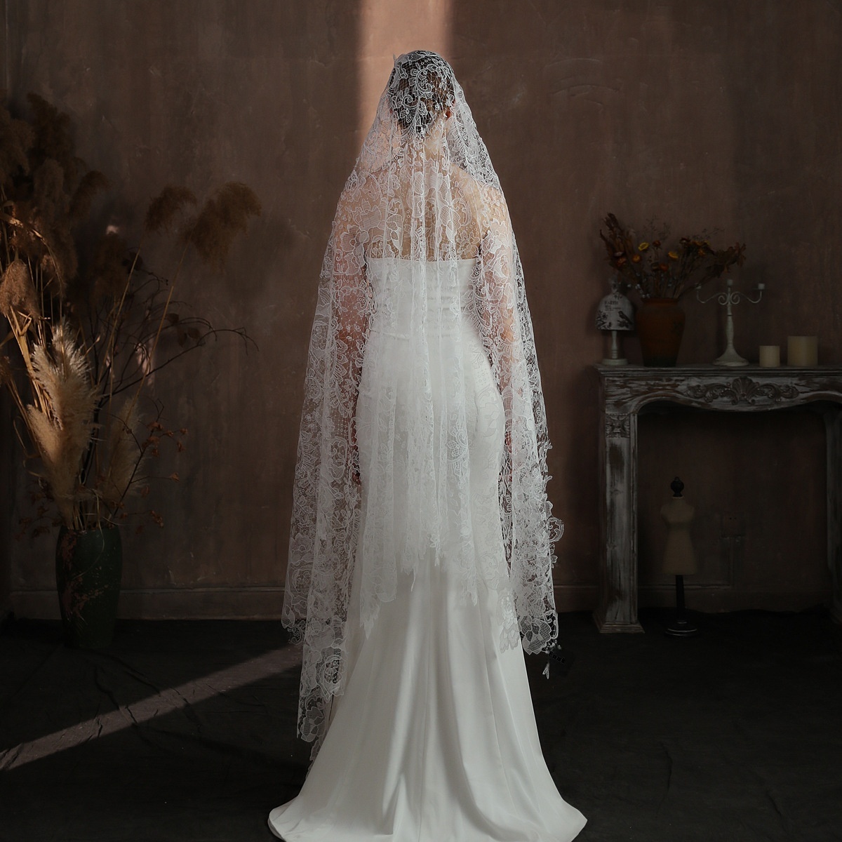 V311 Single-layer White Lace Bride Wedding Veil High-end Internet Celebrity Photo Props Concave Veil