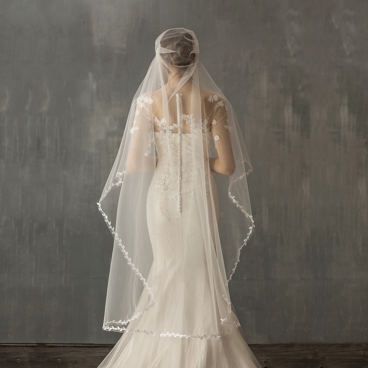 V637 Retro Hat-style Bridal Veil White Super Fairy Leaf Lace Double Side Clip Wedding Travel Photography Soft Yarn Headdress